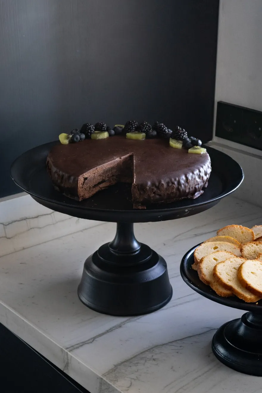 Base mediana negra de aluminio, ideal para complementar tus mesas presentando postres o aperitivos, o incluso para decorar, utilizándola como centro de mesa. Su acabado mate aporta un toque sofisticado a cualquier mesa o celebración.