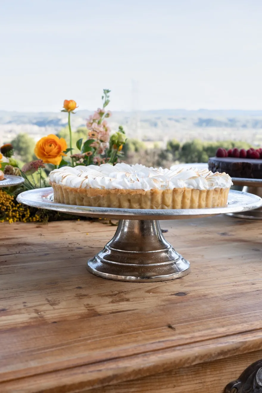 Base de aluminio con pie, ideal para complementar tus mesas, para servir tartas y postres… etc