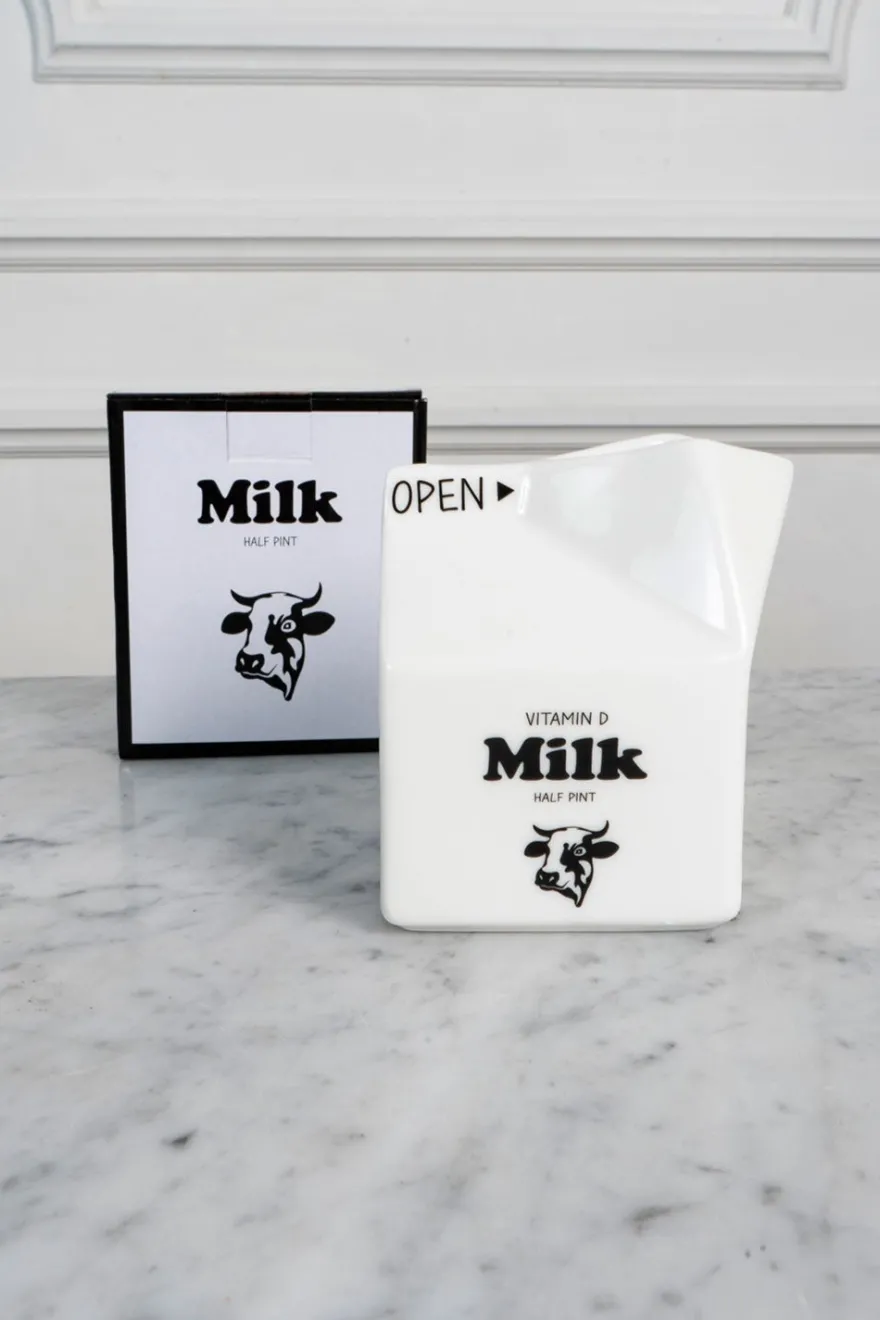 Lechera con forma de brick de leche, original y diseñada exclusivamente por Cristina Oria.