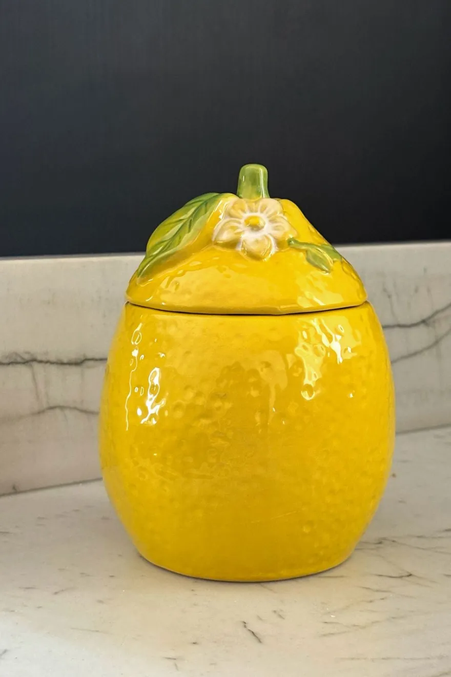 Este recipiente de loza con tapa, decorado con un alegre diseño de limón, combina funcionalidad y estilo en una sola pieza. Perfecto como azucarero o para guardar pequeños alimentos como café, té, especias o snacks. Su acabado artesanal y diseño fresco lo hacen ideal para dar un toque de color y alegría a tu cocina o mesa.