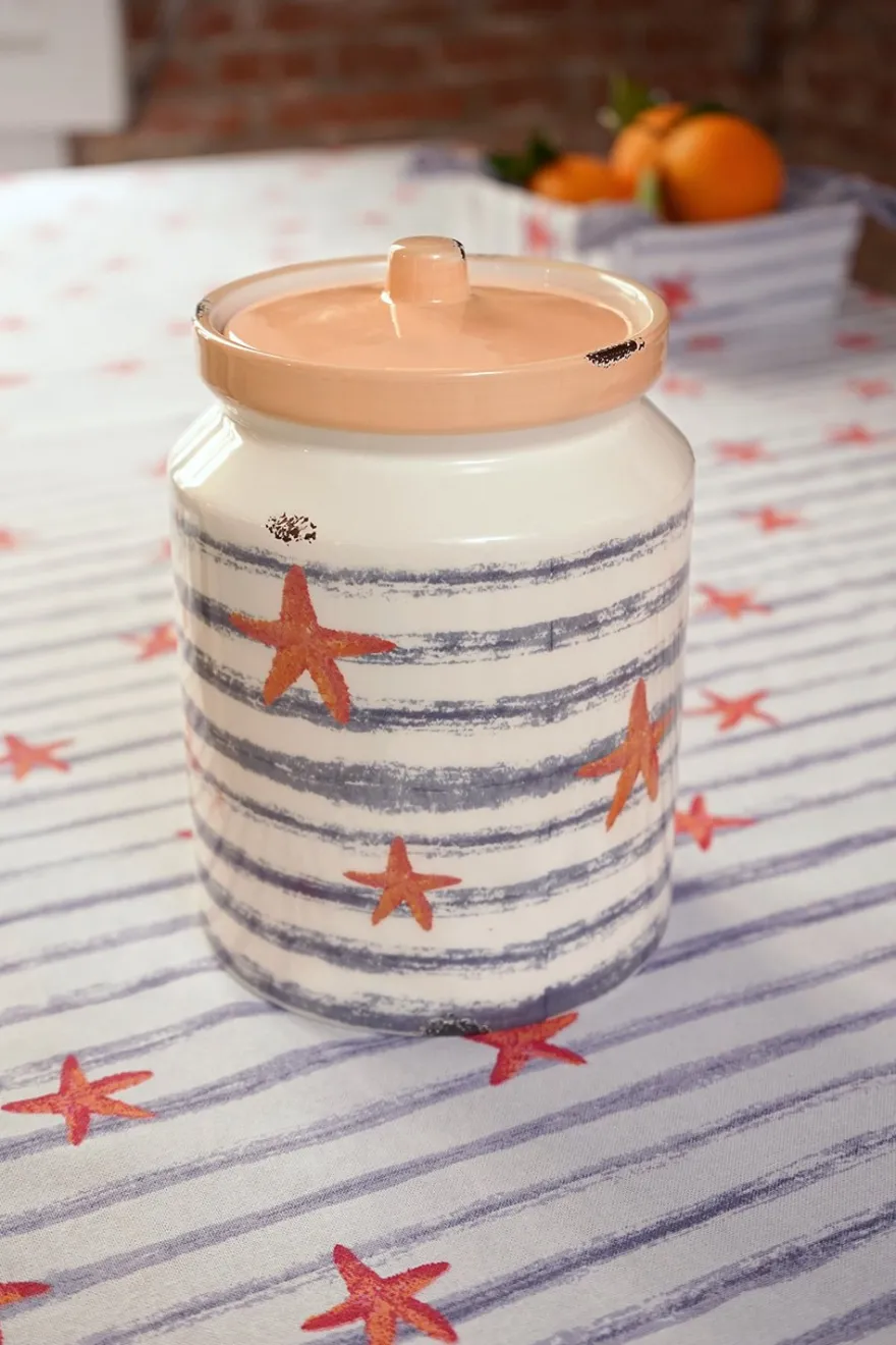 Envase de cerámica en tamaño mediano con diseño de estrellas de mar.