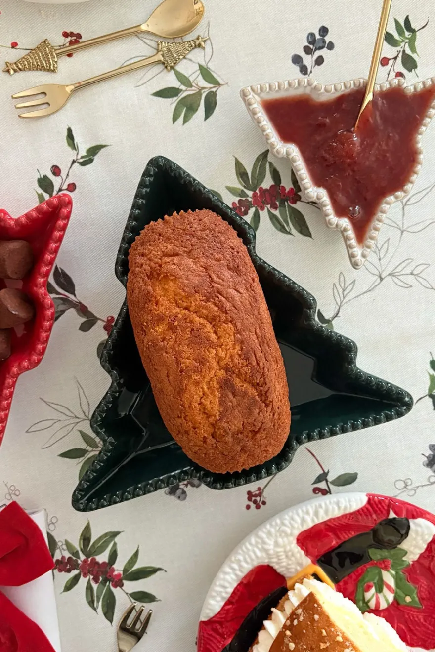 Bandeja de porcelana con forma de abeto y un delicado borde decorado con pequeñas bolitas.