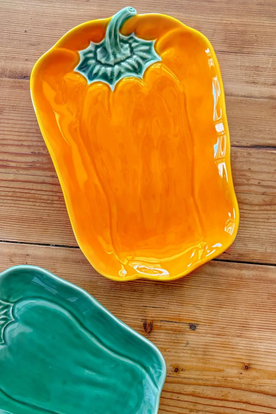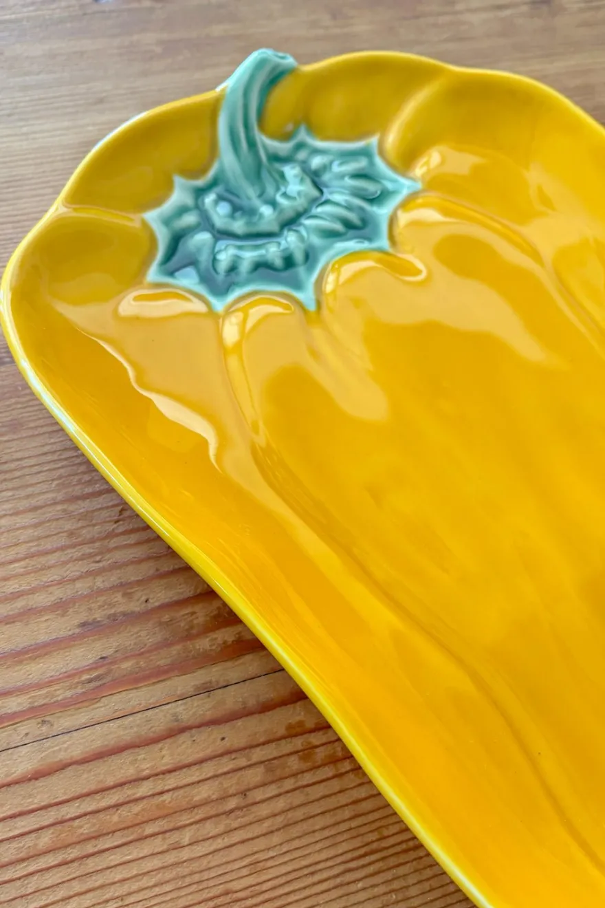 Bandeja de loza fina esmaltada con diseño de pimiento en color amarillo,100% artesanal, ideal para complementar y dar un toque fresco, original y diferente a tus mesas.