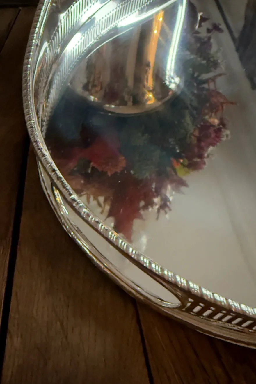 Esta bandeja bañada en plata de ley es una pieza que combina elegancia y sofisticación en su diseño, ideal para servir alimentos o como pieza decorativa. Un accesorio elegante y atemporal para ocasiones especiales y un regalo para toda la vida.