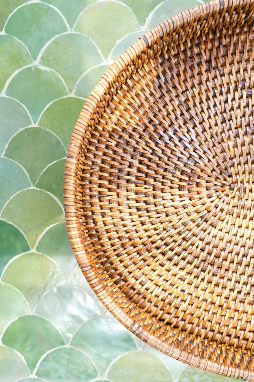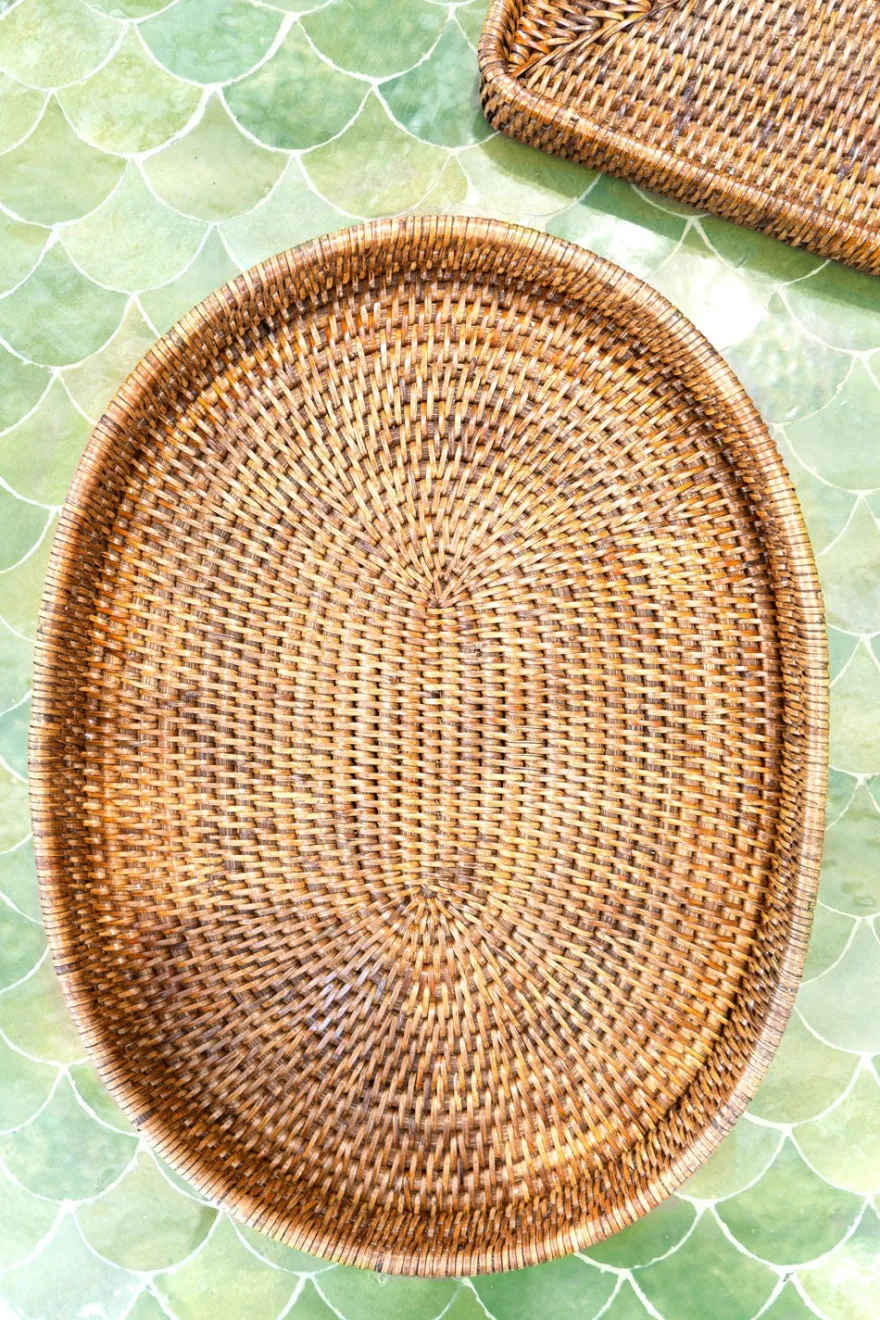 Bandeja ovalada de ratán ideal para servir con estilo, organizar tu espacio o como elemento decorativo. Esta colección combina la belleza del material natural con la funcionalidad y el diseño contemporáneo.