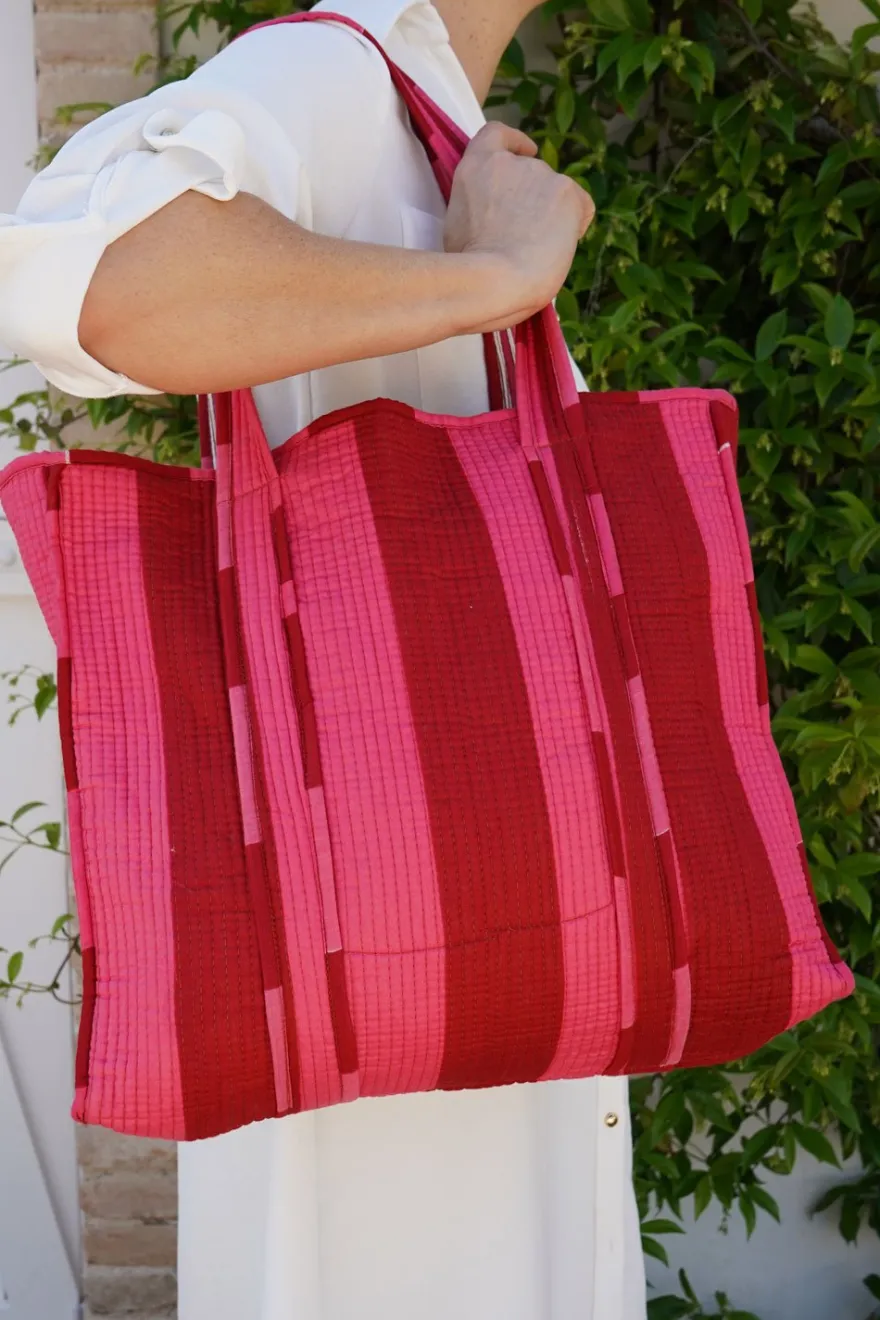 Bolsa reversible con capacidad suficiente para el día a día de la oficina, universidad, viajes, playa… Está confeccionada en 100% algodón y pintada a mano en la India.