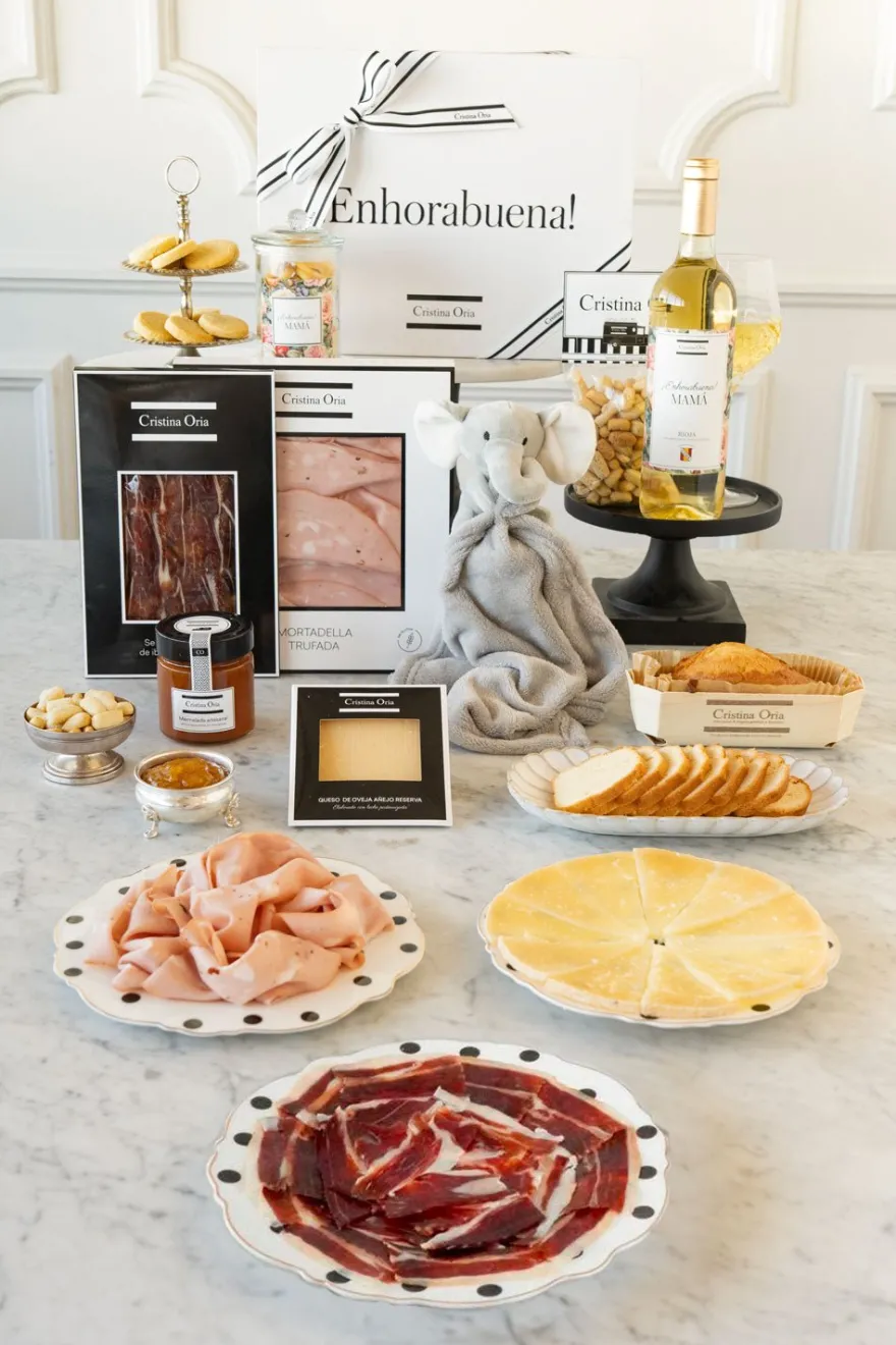 Esta caja para regalar a las recién mamás incluye además de una selección de nuestros mejores productos gourmet que no han podido comer durante el embarazo, nuestro peluche doudou con diseño de elefante que con tanta ilusión hemos diseñado.