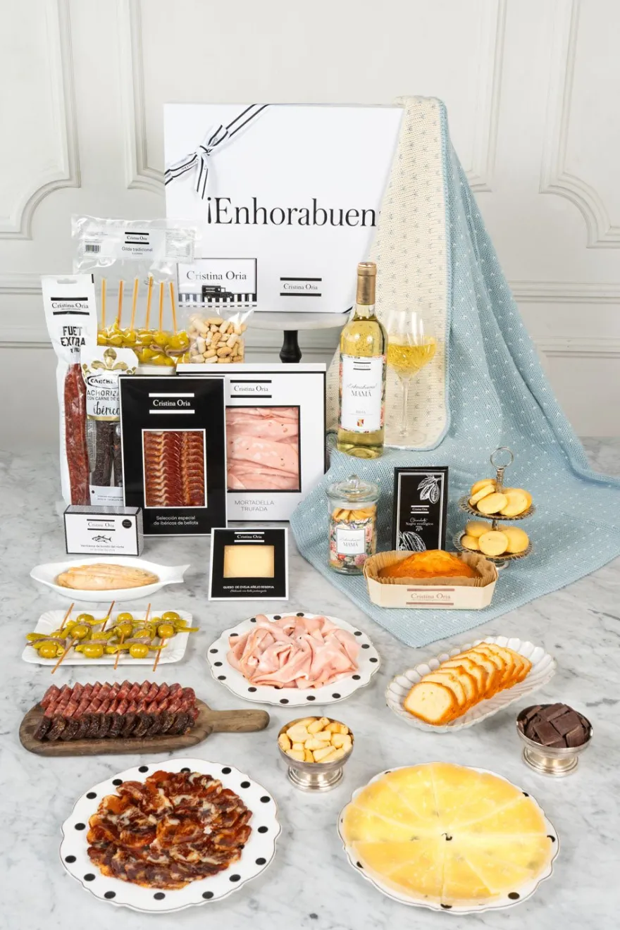 Esta caja es una de nuestras opciones más completas para regalar a las recién mamás, ya que incluye una gran variedad de nuestros mejores productos gourmet, además de nuestras nuevas mantitas de 100% algodón (a elegir entre color rosa o azul) para el recién nacido.
