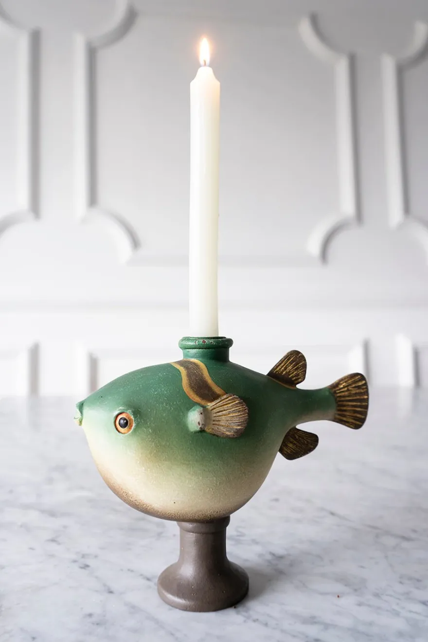 Cristina Oria Candelabros Y Portavelas^Candelabro Con Diseño De Pez En Color Verde