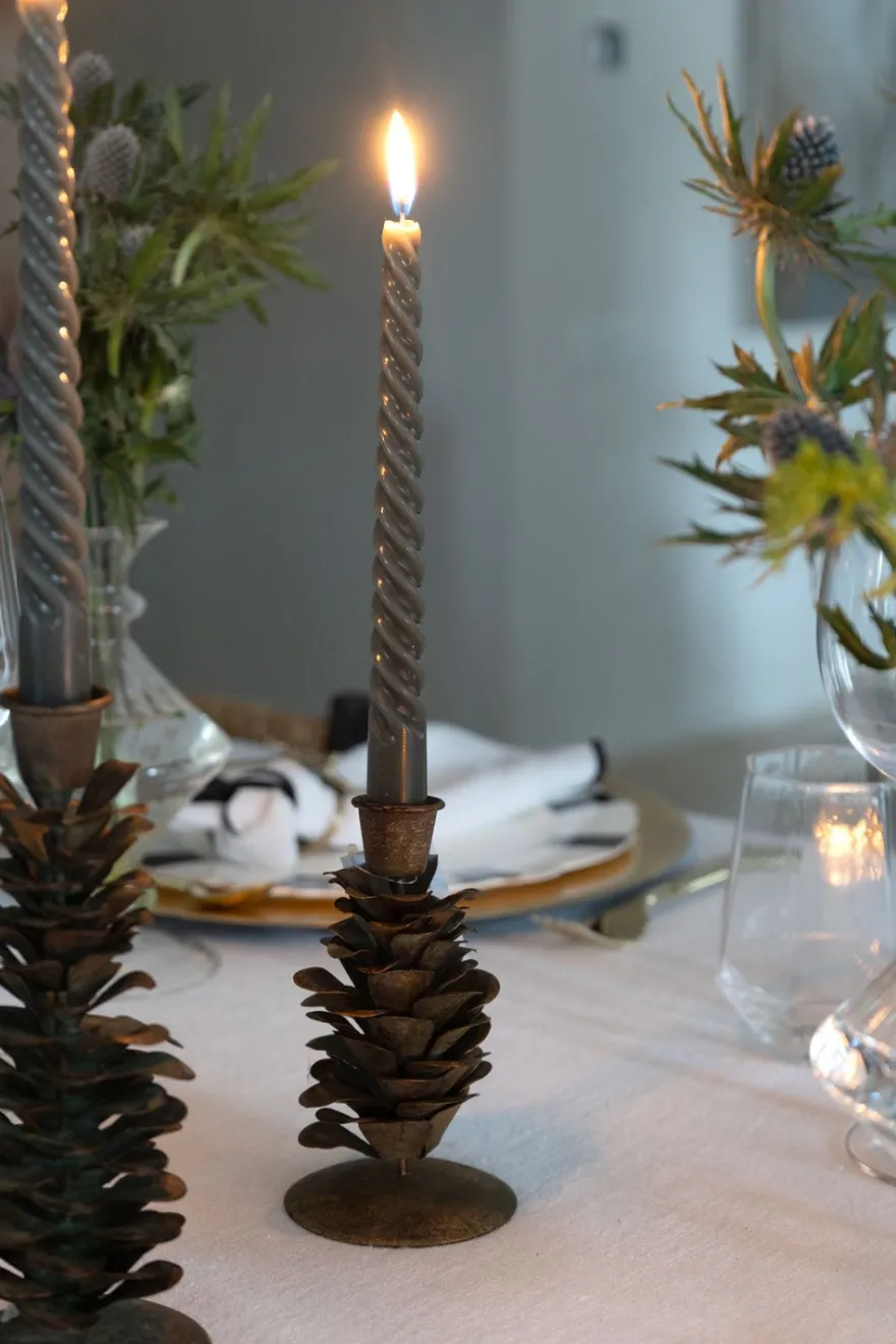 Candelabro o portavelas de metal con diseño de árbol en color verde y con detalles dorados, ideal para ambientar y decorar cualquier rincón de tu casa durante las Navidades o en cualquier época del año.