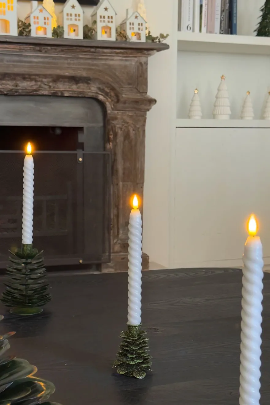 Este candelabro de hierro presenta un elegante diseño en forma de árbol, ideal para añadir un toque natural y festivo a cualquier espacio. Su estructura sólida y su acabado en tonos verdes con purpurina lo convierten en una pieza decorativa perfecta para mesas, repisas o centros de mesa durante la temporada navideña. Funcional y decorativo, aporta calidez y estilo a tu casa.