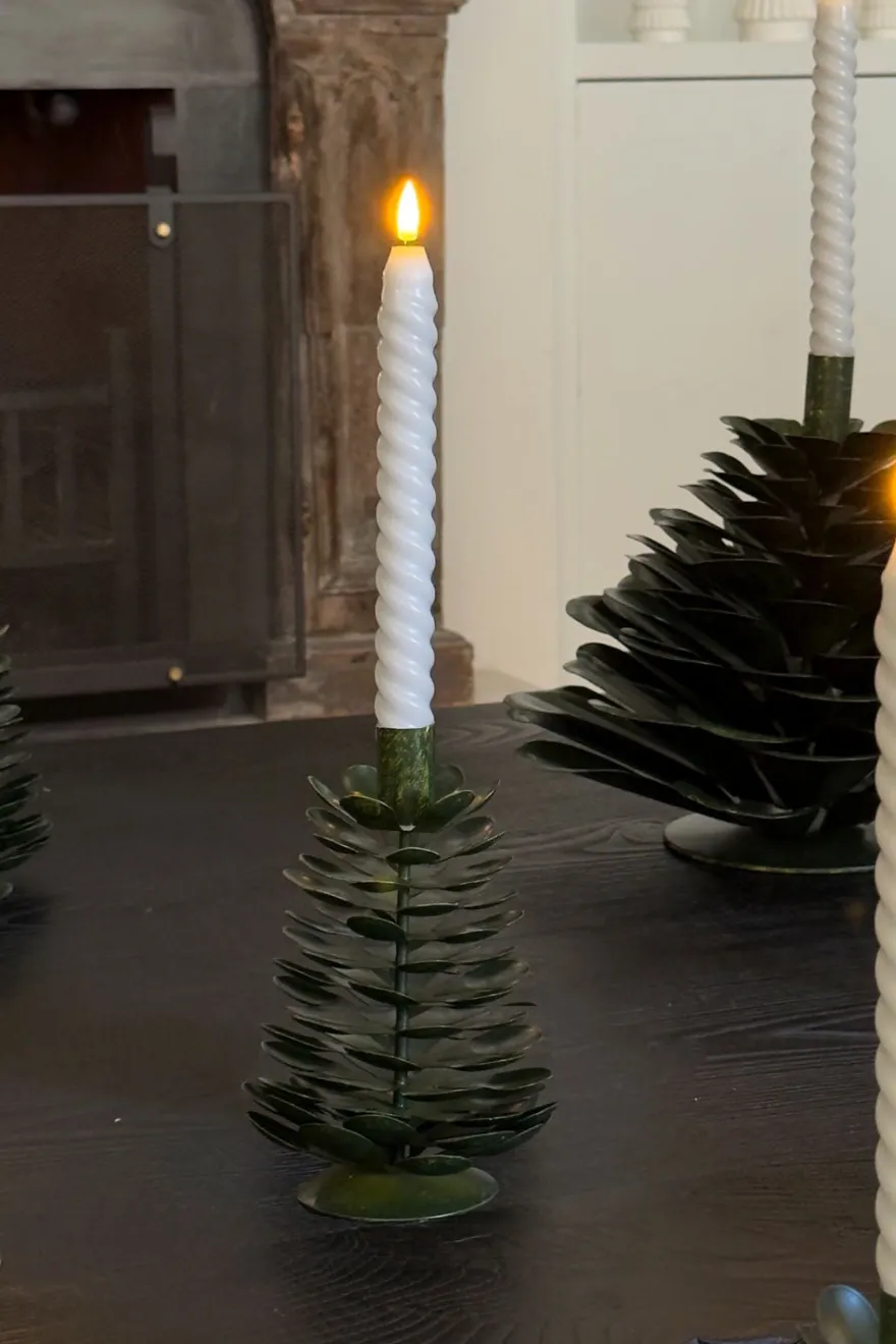 Este candelabro de hierro presenta un elegante diseño en forma de árbol, ideal para añadir un toque natural y festivo a cualquier espacio. Su estructura sólida y su acabado en tonos verdes lo convierten en una pieza decorativa perfecta para mesas, repisas o centros de mesa durante la temporada navideña. Funcional y decorativo, aporta calidez y estilo a tu casa.