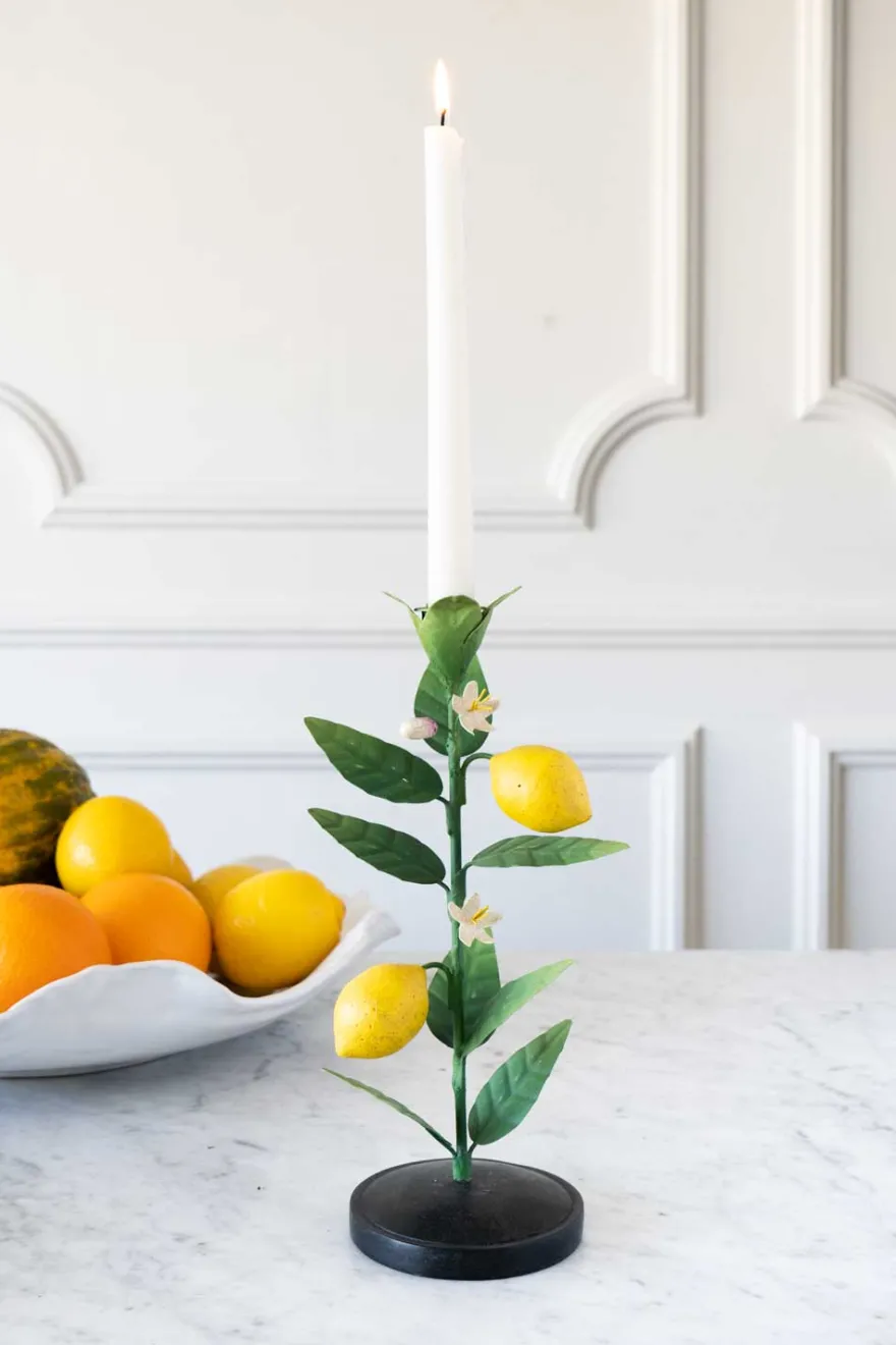 Candelabro súper especial de metal con diseño de limones, perfecto para decorar cualquier rincón de tu casa y darle un toque fresco, original y diferente en primavera y verano.