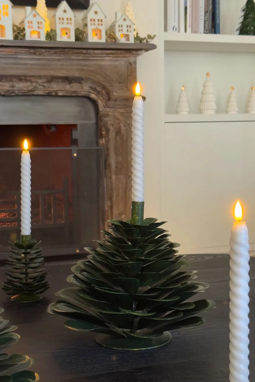 Este candelabro de hierro presenta un elegante diseño en forma de árbol, ideal para añadir un toque natural y festivo a cualquier espacio. Su estructura sólida y su acabado en tonos verdes lo convierten en una pieza decorativa perfecta para mesas, repisas o centros de mesa durante la temporada navideña. Funcional y decorativo, aporta calidez y estilo a tu casa.
