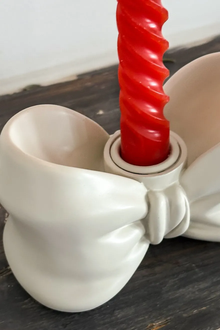 Este portavelas blanco de porcelana tiene un diseño sencillo y elegante, con un lazo que le da un toque especial. Ideal para cualquier tonalidad de vela, es perfecto para añadir un toque de frescura y estilo a cualquier espacio. Su diseño limpio y moderno lo convierte en una pieza versátil y atemporal.