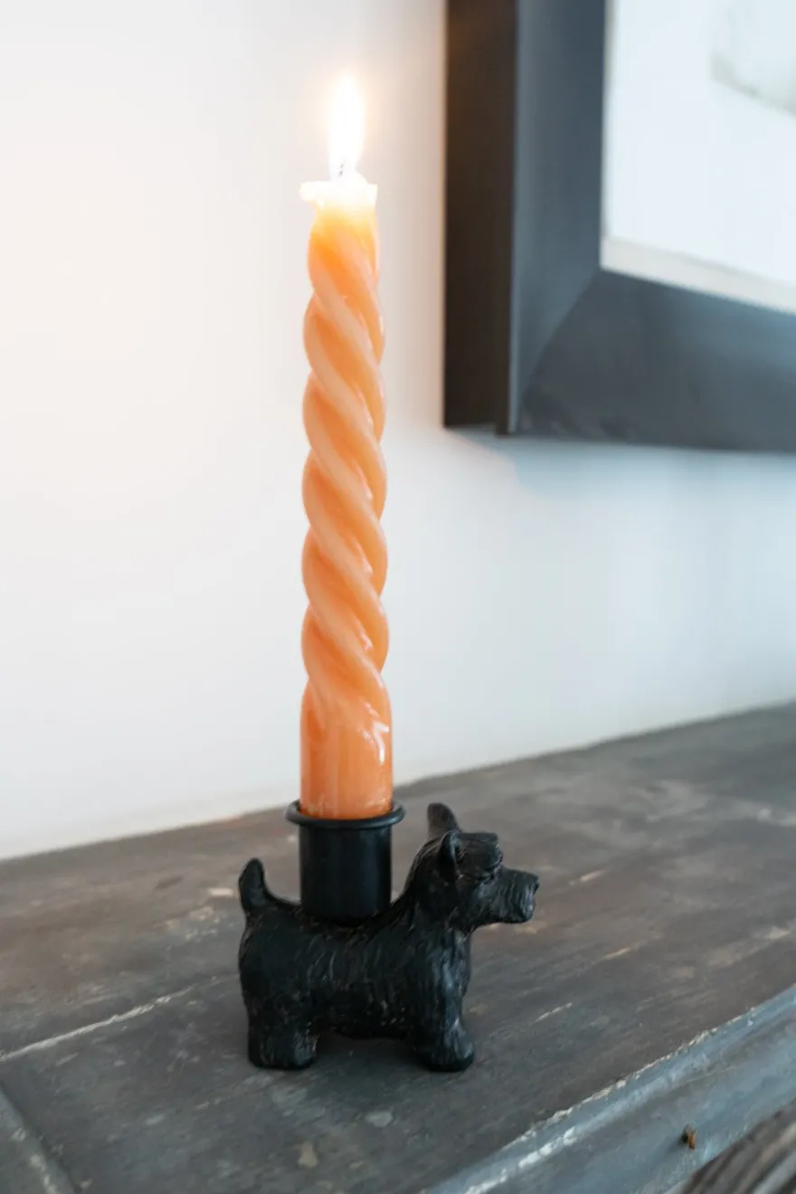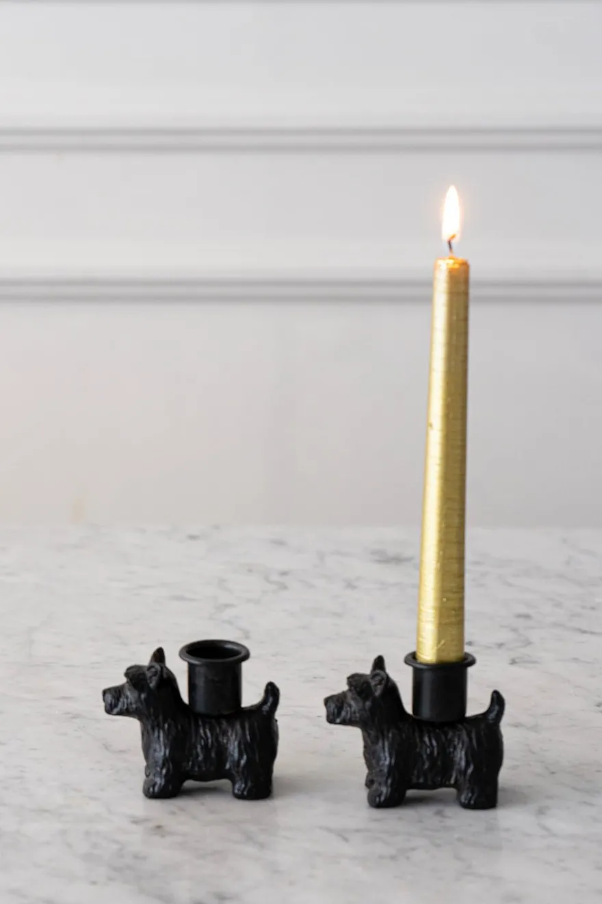 Portavelas de bronce negro con diseño de terrier, original y diferente para decorar y ambientar cualquier rincón de tu casa.