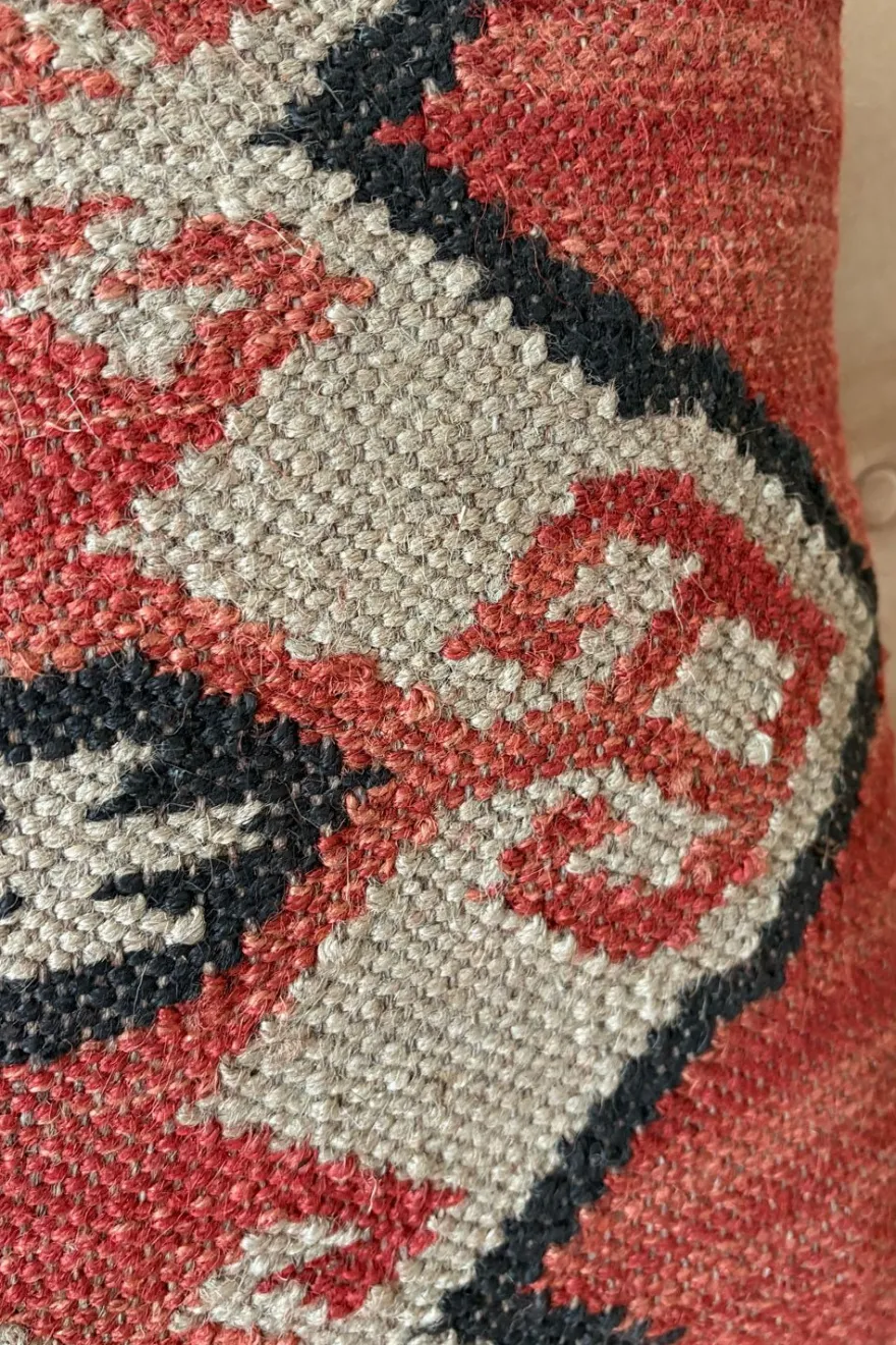 Colección de cojines elaborados en yute y lana, materiales naturales que aportan textura, calidez y un carácter artesanal a cualquier espacio. Sus diseños geométricos, inspirados en tejidos tradicionales tipo kilim, combinan tonos tierra y motivos étnicos que encajan fácilmente en ambientes boho, rústicos o contemporáneos.