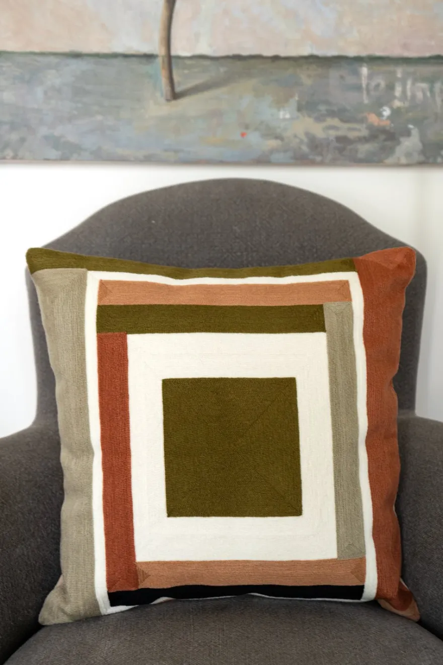 Cojín de 100% algodón, con diseño geométrico en tonalidades tierra, que le dará un aspecto fresco, elegante y lujoso a tu salón o dormitorio.
