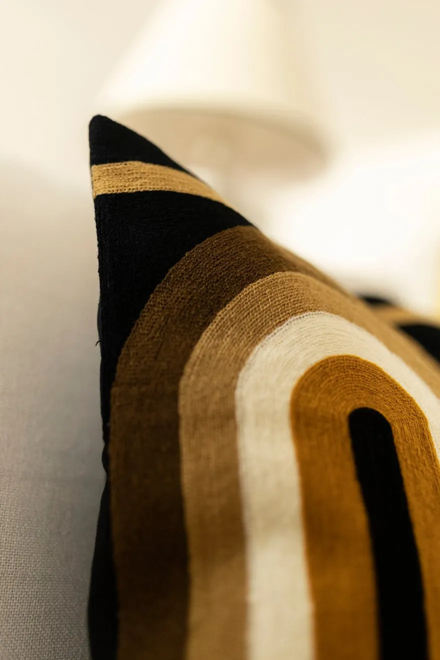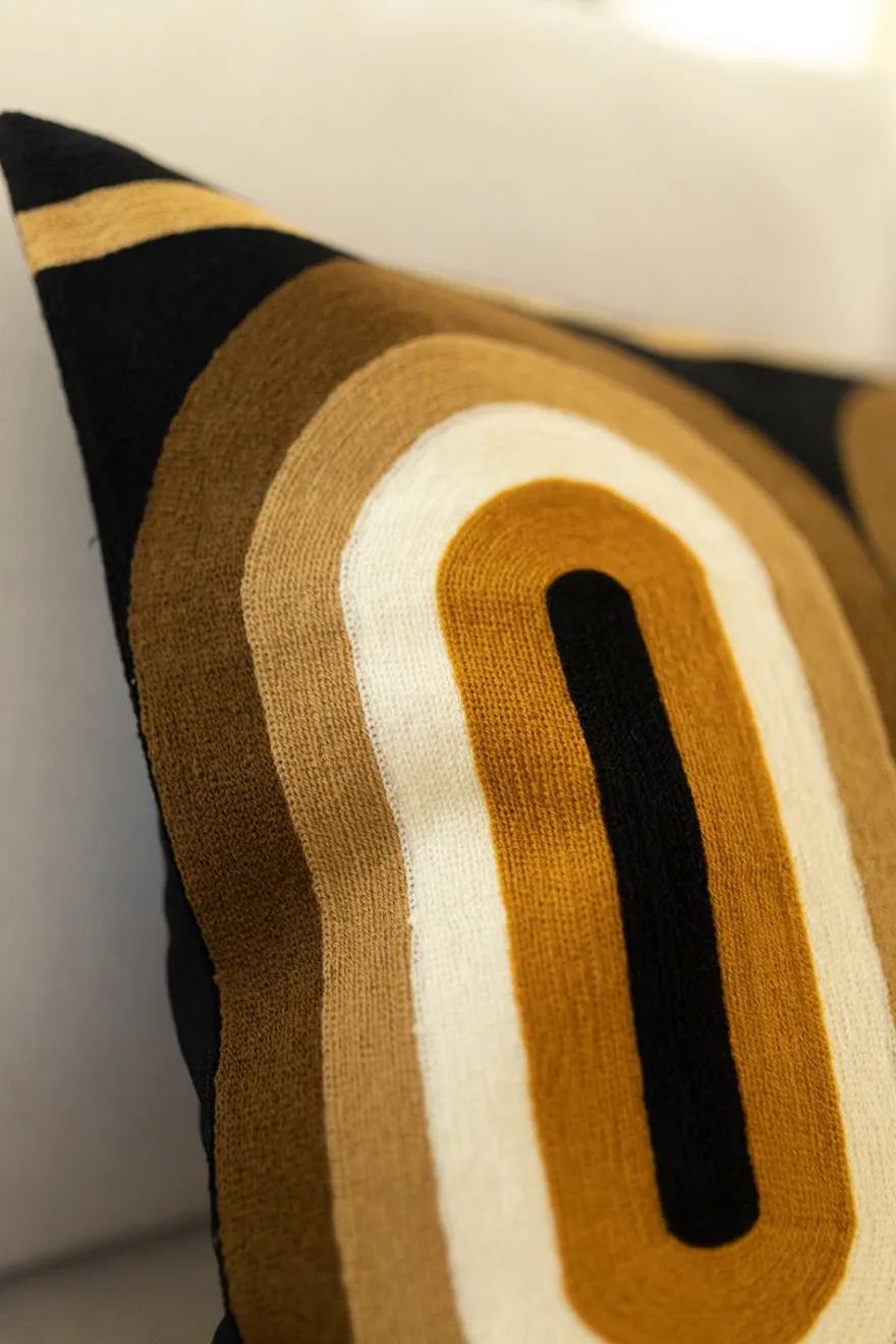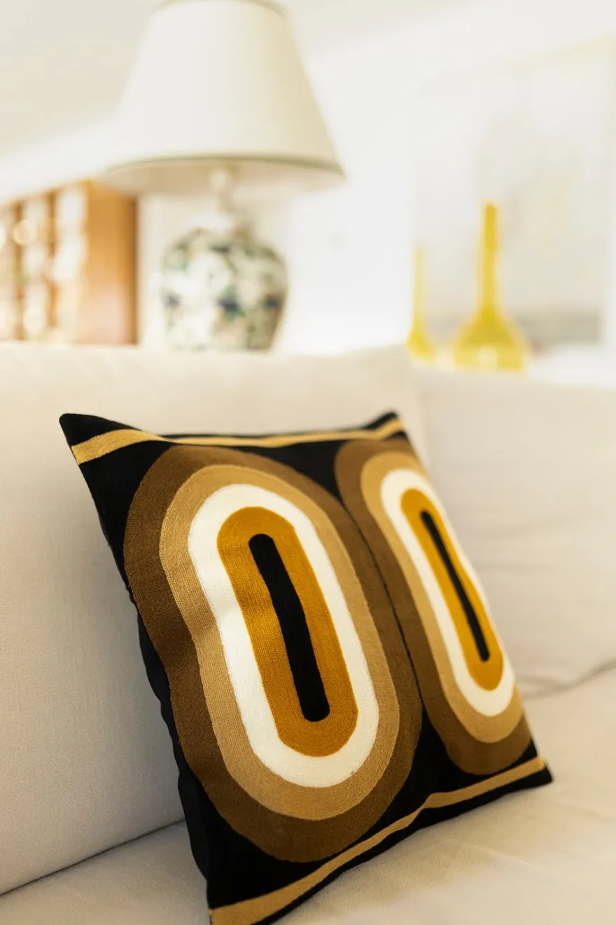 Cojín de algodón bordado a mano, con diseño retro en tonalidades mostaza, que le dará un aspecto fresco, elegante y lujoso a tu salón o dormitorio.