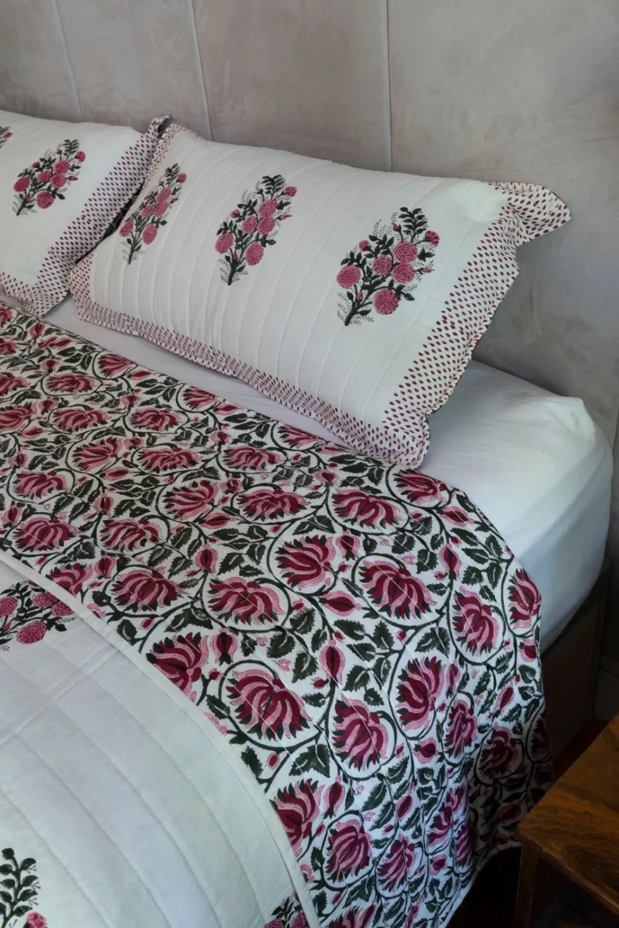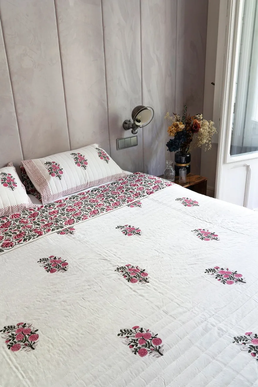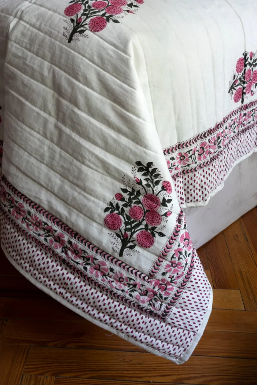 Edredón 100% algodón con diseño Kalpana, cuyo significado es “Fantasía”, pintado a mano en la India.