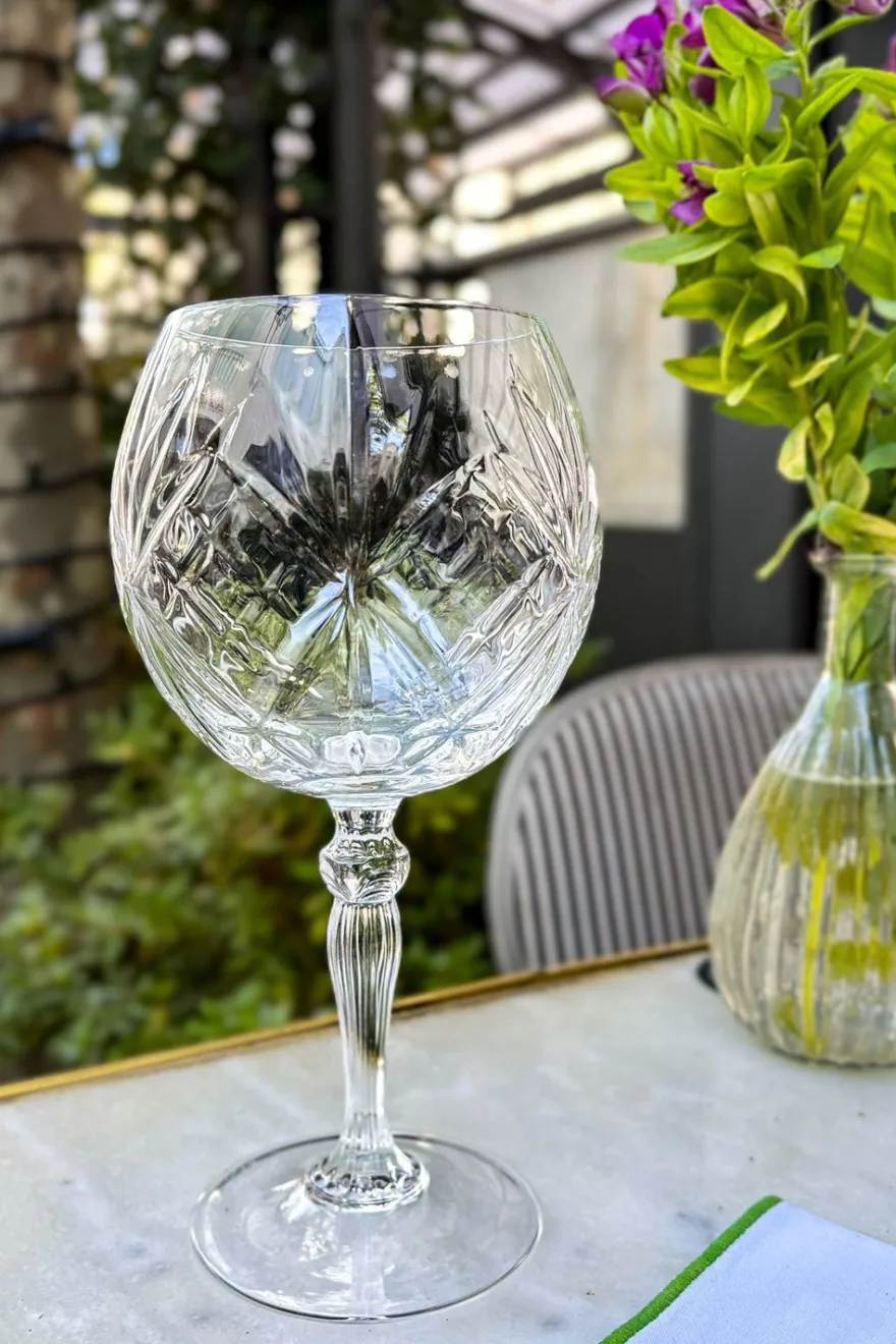 Esta copa destaca por su diseño clásico con delicados grabados que aportan un toque de sofisticación y brillo. Fabricada en cristal transparente, combina elegancia y resistencia, ofreciendo una presentación impecable para vinos, cócteles o bebidas especiales. Su tallo estilizado y su cáliz finamente trabajado la convierten en una pieza perfecta para mesas especiales, celebraciones o como detalle decorativo.