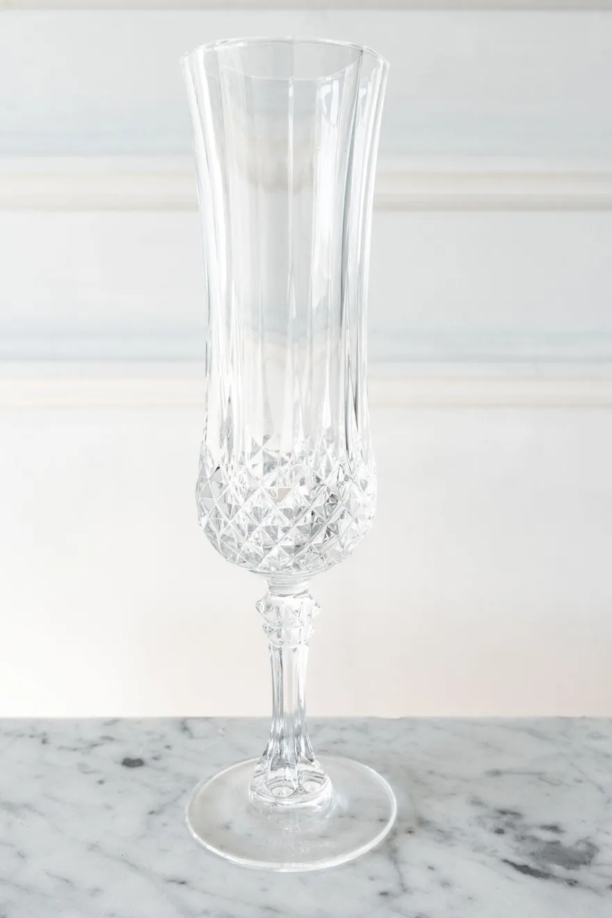 Set de seis copas especiales para champagne, cava, sidra y todo tipo de vinos espumosos, de cristal d’arques del modelo Longchamp, con aspecto tallado que combinan tradición y modernidad en cualquier ocasión.