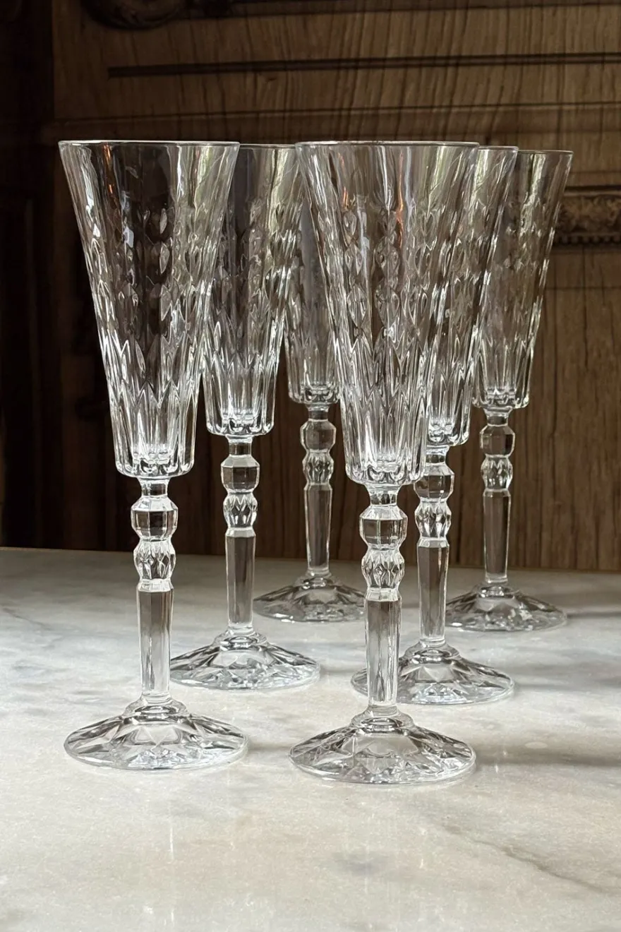Set de seis copas de champagne de nuestra cristalería con diseño lumiére.