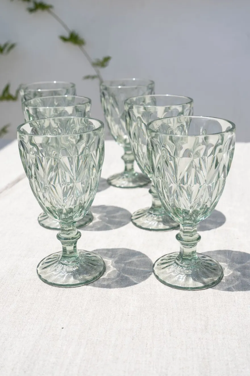 Set de seis copas verdes acrílicas con diseño de rombos, ideales para complementar y dar un toque fresco, original y diferente a tus mesas este verano.