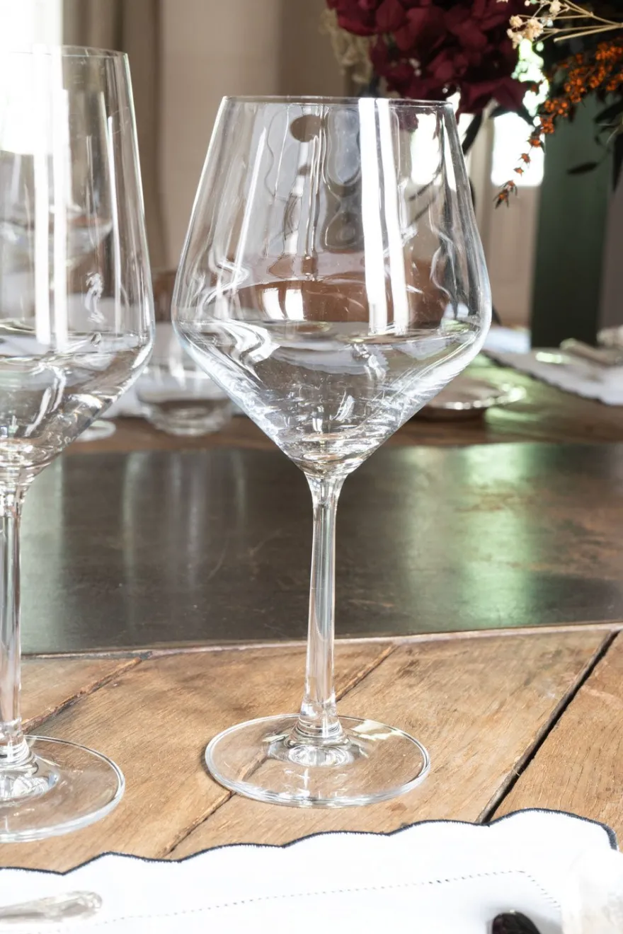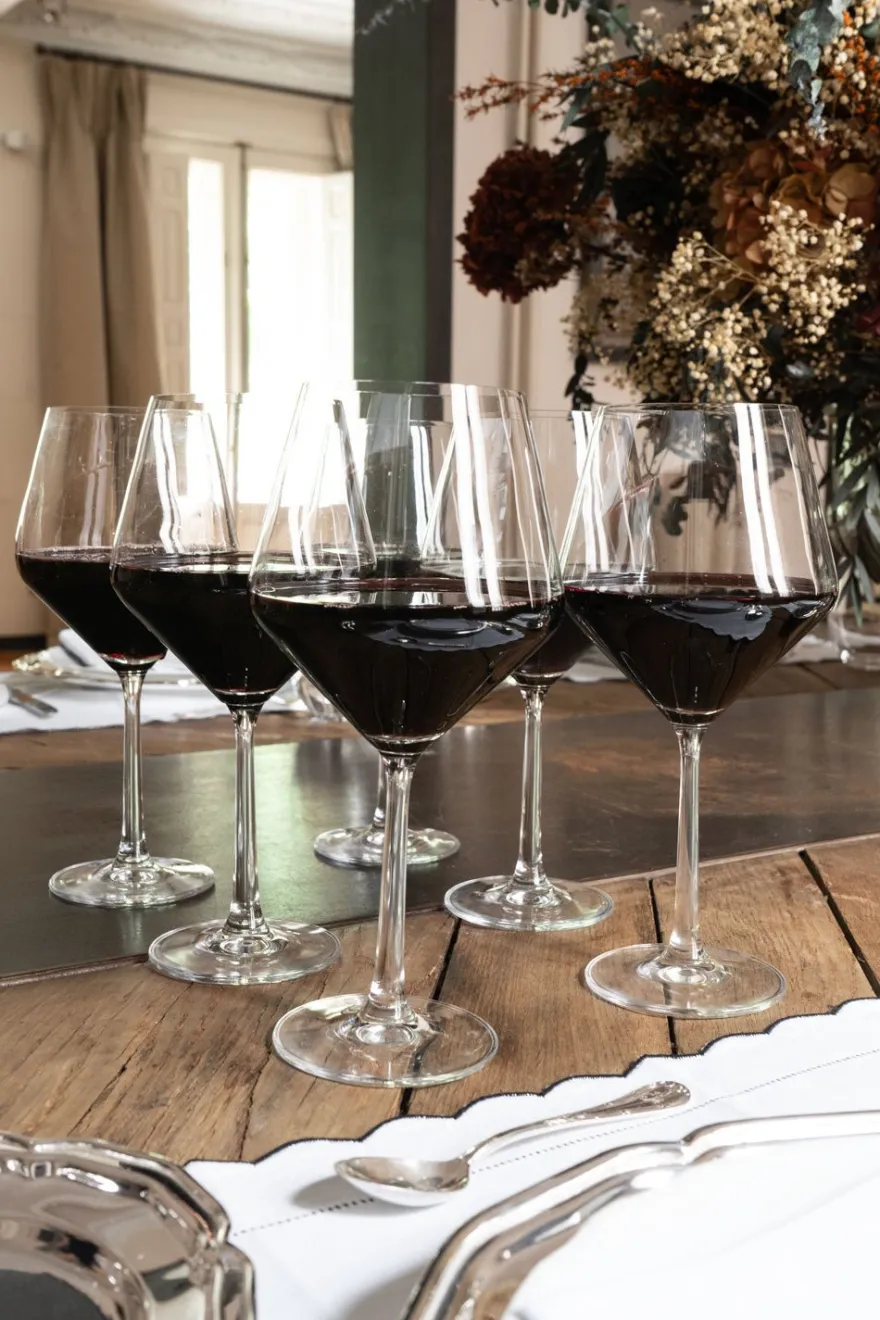 Set de seis copas de cristal especiales para vino tinto, anchas y finas, ya que sus bordes están cortados con láser fino, y perfectas para que el vino se pueda airear y por tanto degustar.