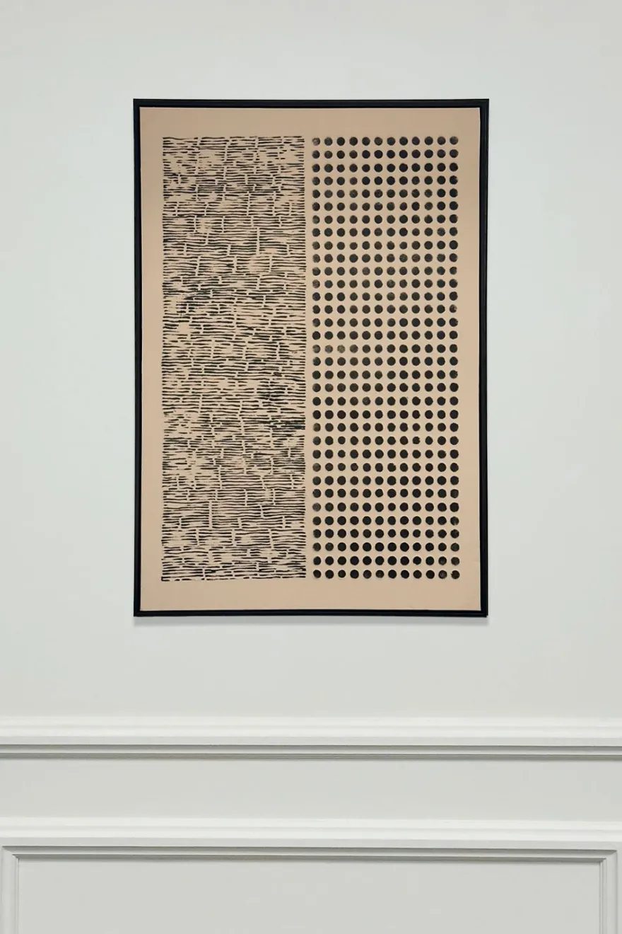 Cuadros de estilo abstracto con patrones gráficos de líneas y puntos que aportan textura y equilibrio visual. Su diseño minimalista y su paleta de tonos neutros los hacen piezas versátiles y atemporales, ideales para añadir un toque contemporáneo y elegante a cualquier espacio.