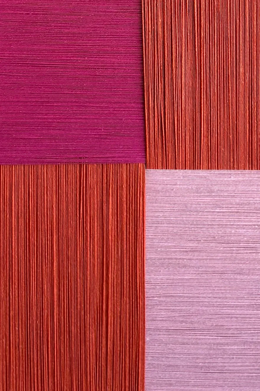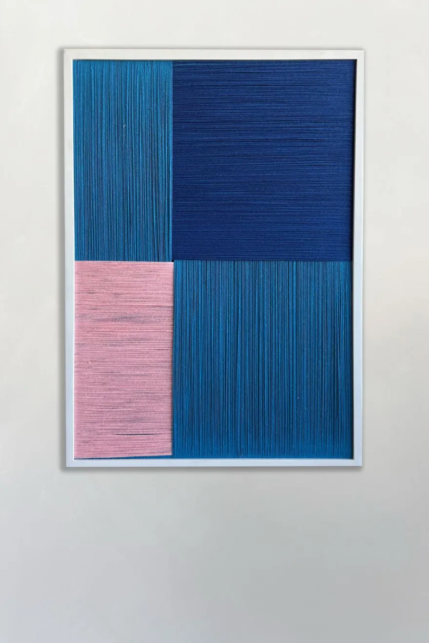 Cuadros artesanales elaborados con cuerdas de lino tensadas y dispuestas cuidadosamente para crear un elegante efecto tridimensional. Su diseño geométrico en bloques aporta equilibrio y carácter, mientras que la textura natural del lino añade profundidad y movimiento según la luz y el ángulo desde el que se observe.