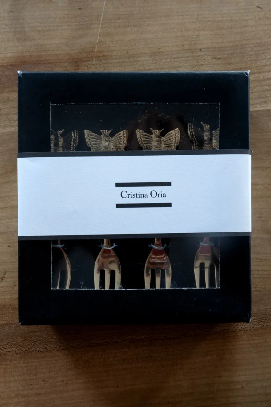 Este elegante set de cuatro tenedores de bronce es el complemento perfecto para cualquier mesa. Cuentan con la figura de un delicado pájaro en su extremo, lo que los convierte en un regalo único.