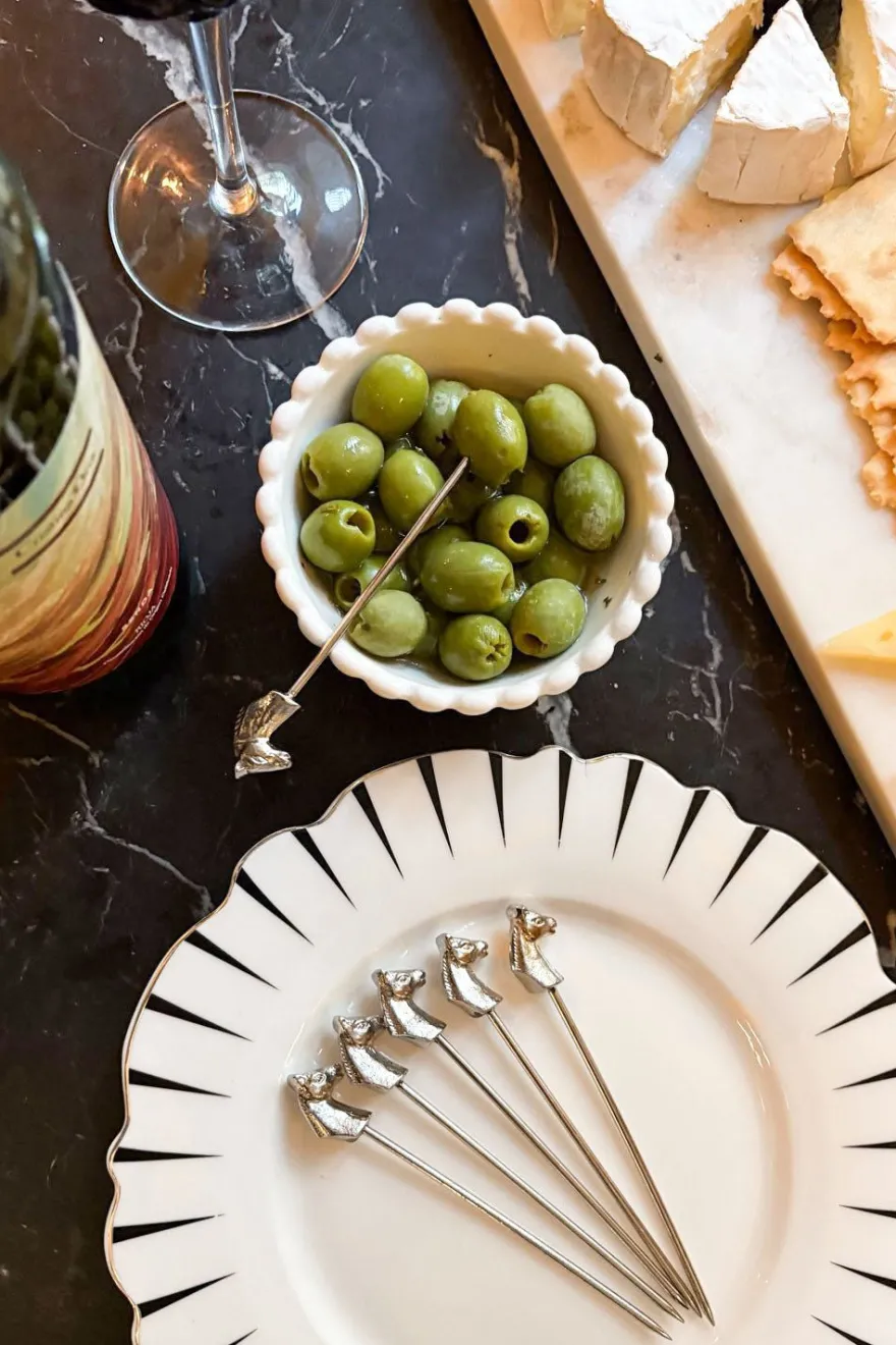 Este elegante set de seis pinchos plateados es el complemento perfecto para cualquier mesa. Cuentan con la figura de una delicado caballo en su extremo, lo que los convierte en un regalo único.