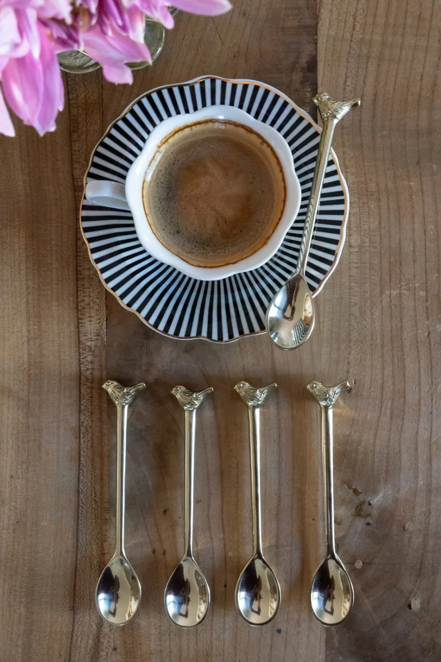 – Set de cuatro originales cucharitas de bronce que cuentan con la figura de una delicada mariposa o pájaro en su extremo (a elegir). También las recibirás en su caja perfecta para regalar