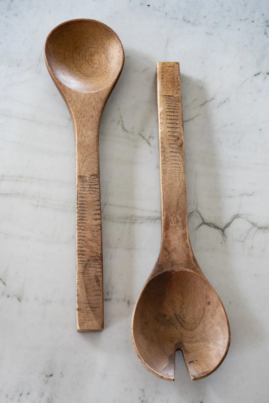 Estos cubiertos de servir de madera son ideales para añadir un toque cálido y natural a tu mesa. Su diseño elegante y funcional los convierte en una herramienta perfecta para servir ensaladas, pastas o cualquier otro plato. Su superficie suave y acabado pulido ofrecen una gran durabilidad y resistencia, mientras que su aspecto artesanal aporta un aire rústico y sofisticado a cualquier celebración o comida diaria.