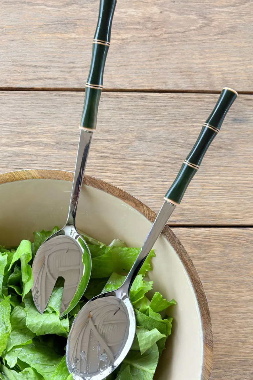 Cubiertos especiales para servir de nuestra cubertería con delicado diseño inspirado en el bambú, que aporta frescura y carácter a la mesa. Sus mangos evocan la estética natural de este material, creando una pieza elegante y atemporal que combina fácilmente con diferentes estilos de vajilla y decoración.