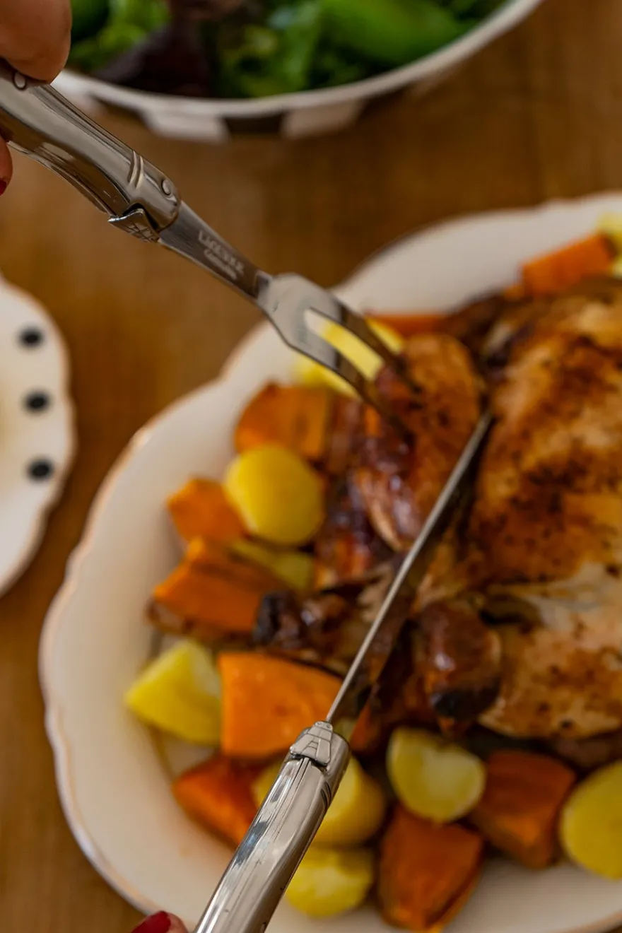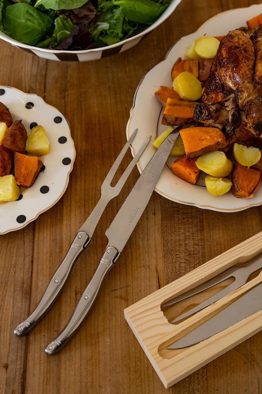 Cubiertos especiales para trinchar en color plateado de acero inoxidable con diseño Cristina Oria.