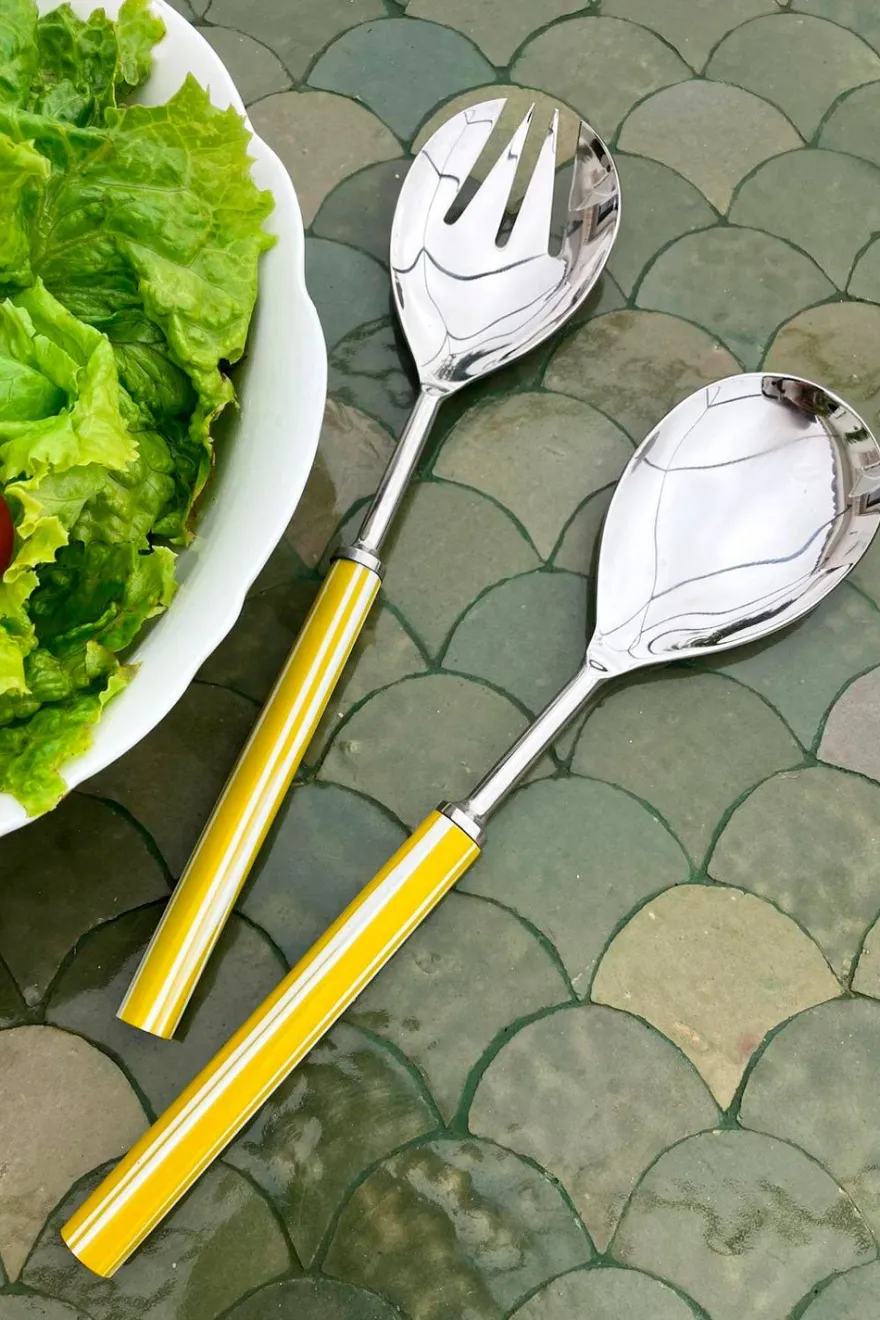 Cubiertos de servir de acero inoxidable y mango de resina, ideales para complementar tus mesas y darles un toque diferente y original.