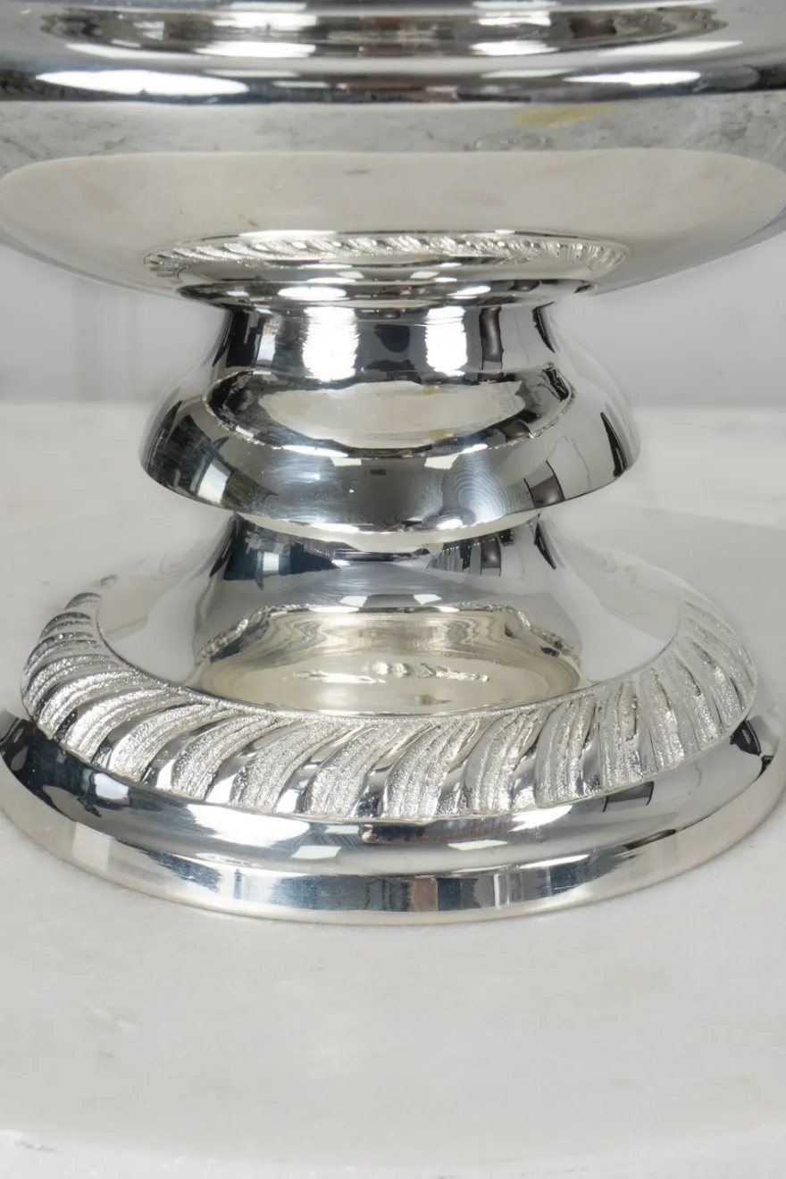 Esta champanera o cubitera bañada en plata de ley, es una pieza que combina elegancia y sofisticación en su diseño, ideal para añadir un toque de lujo a tu mesa. Un accesorio elegante y atemporal para ocasiones especiales y un regalo para toda la vida.