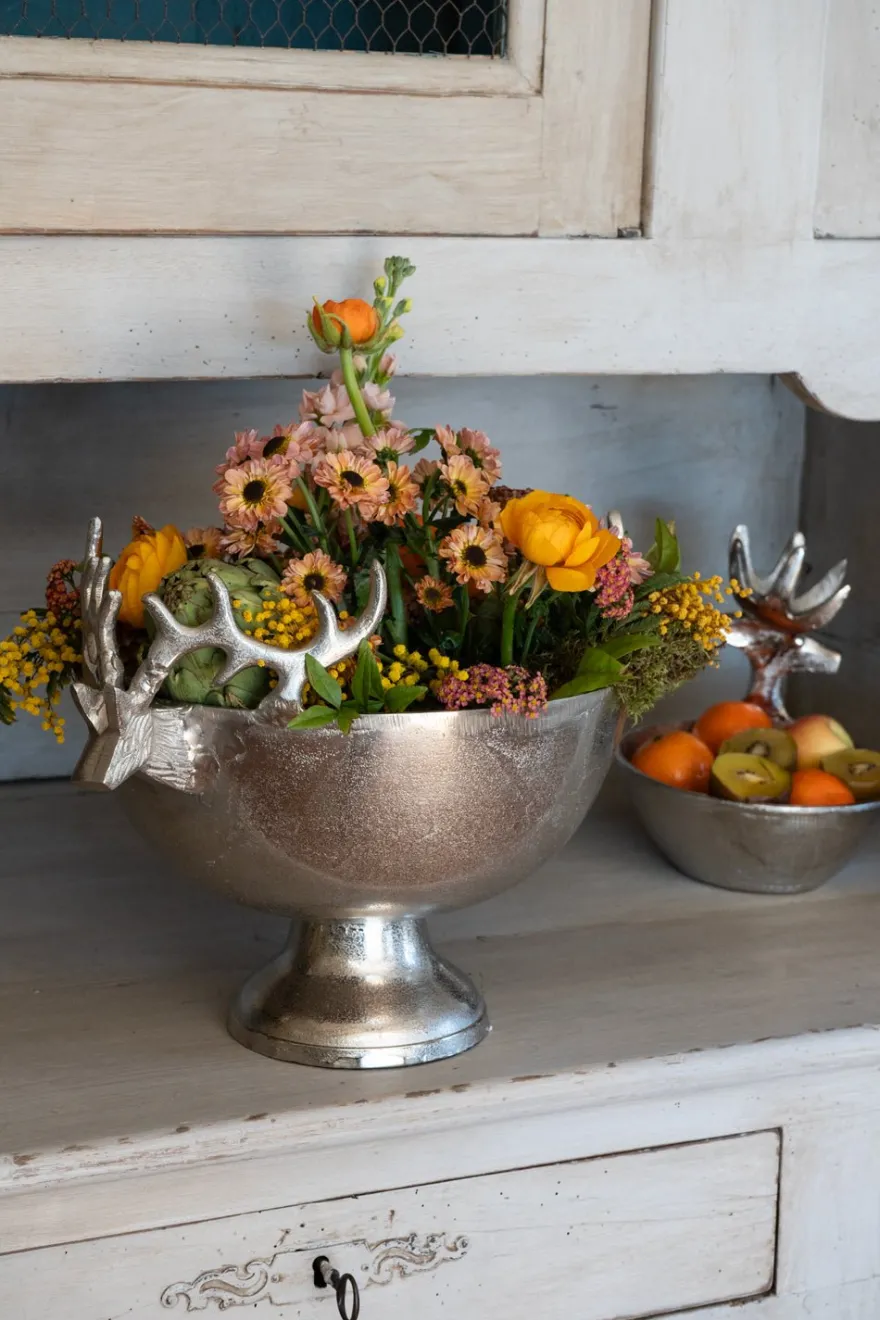 Champanera o cubitera de aluminio con pie y asas con diseño de ciervo, ideal para interiores y exteriores, e incluso para el campo.