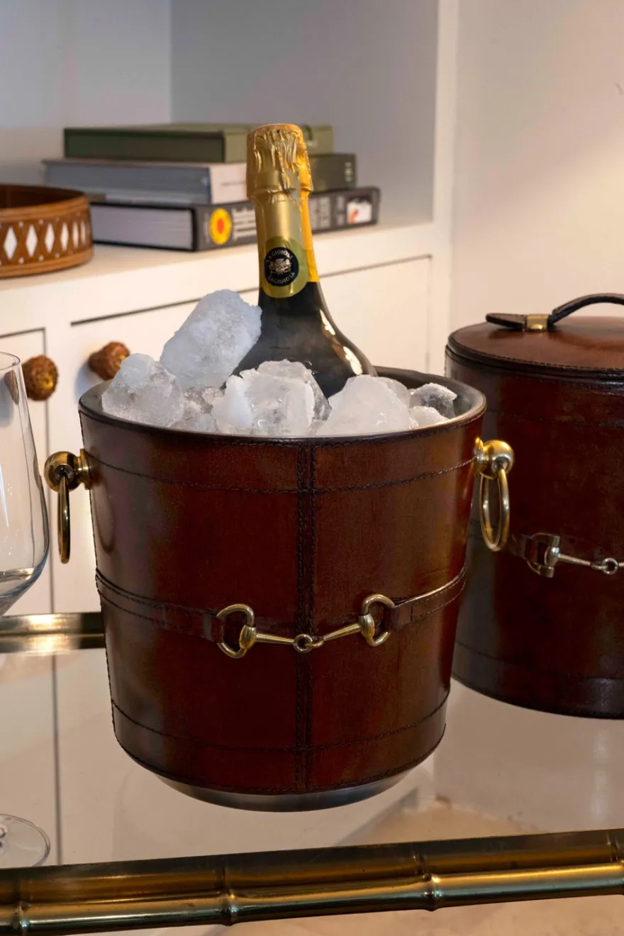 Cubitera de cuero con detalle de hierro y arandelas, perfecta para interiores y exteriores e incluso para el campo.