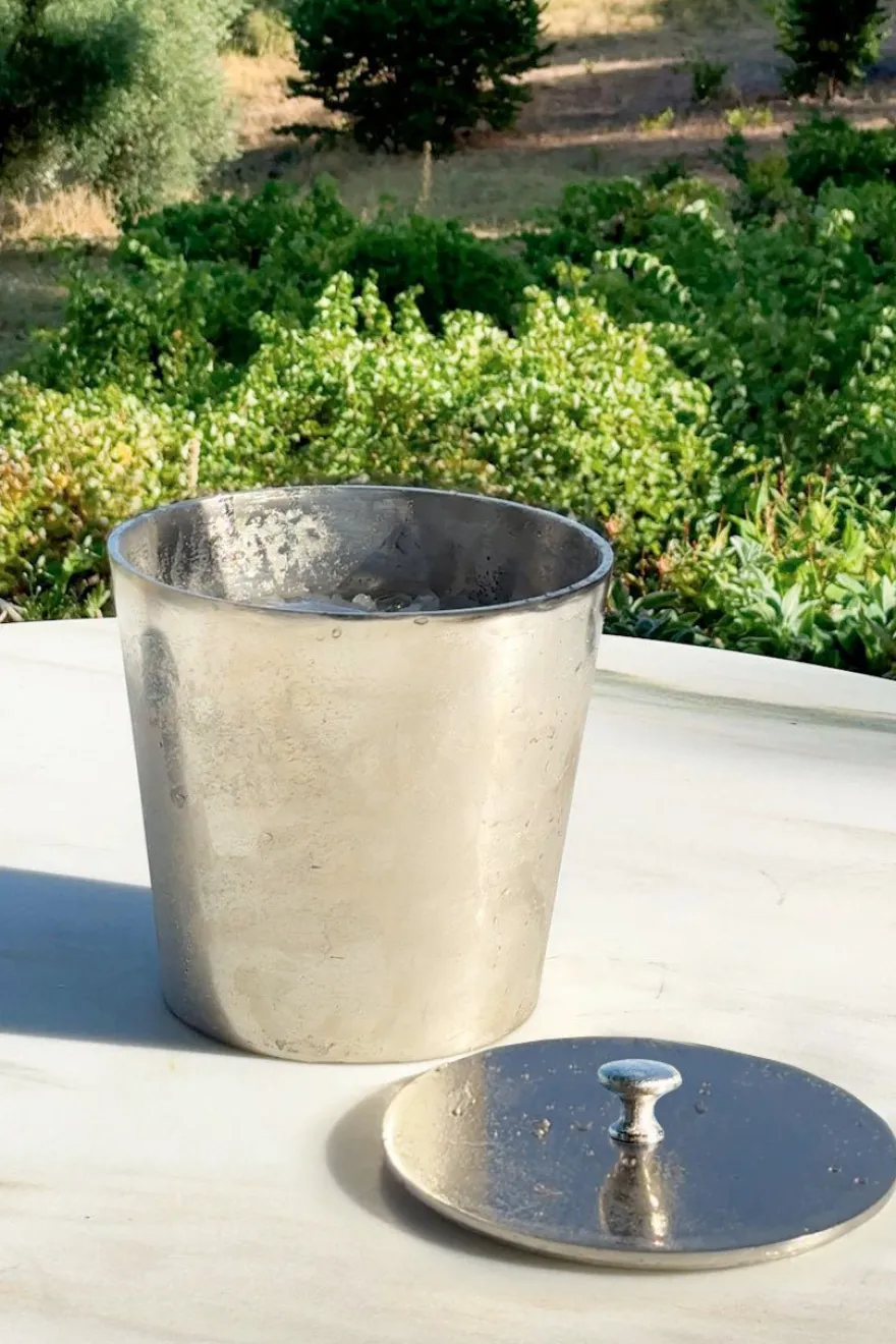 Cubitera o champanera de aluminio con tapa, ideal tanto para interiores como exteriores.