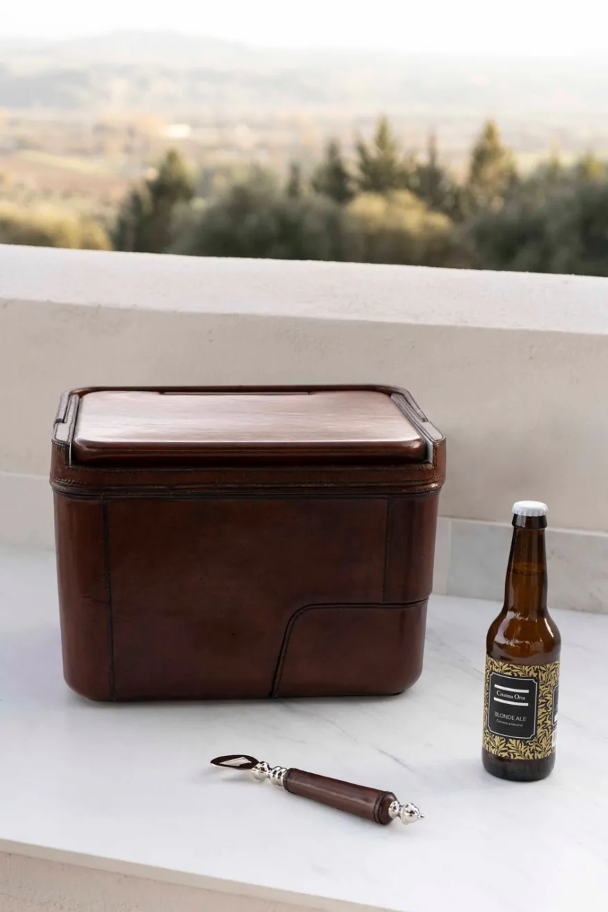 Nevera portátil forrada de cuero grande perfecta para interiores y exteriores e incluso para el campo. Mantiene las bebidas y alimentos a buena temperatura en cualquier plan.