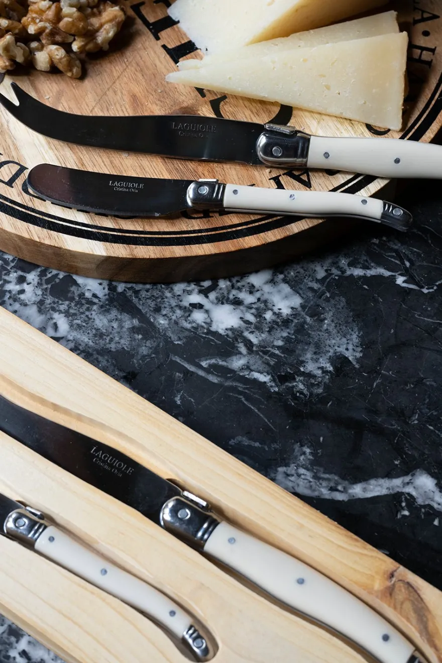Set de dos cuchillos especiales para queso y para untar en color blanco de acero inoxidable con diseño Cristina Oria.