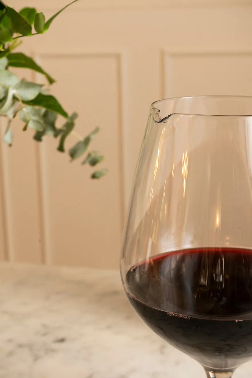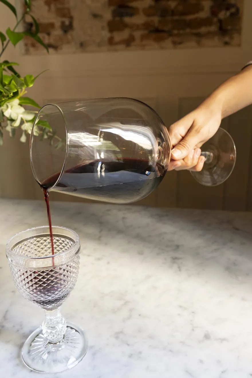 Decantador de cristal con la original forma de una copa de vino.