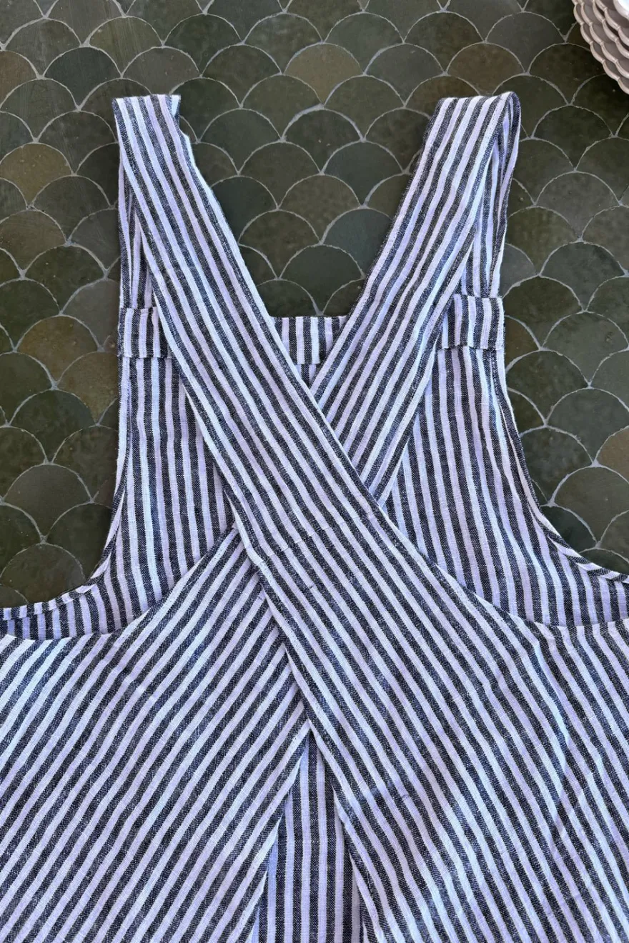 Delantal de lino hecho a mano con diseño de rayas en color negras, disponible en otros colores, perfecto para su uso diario.