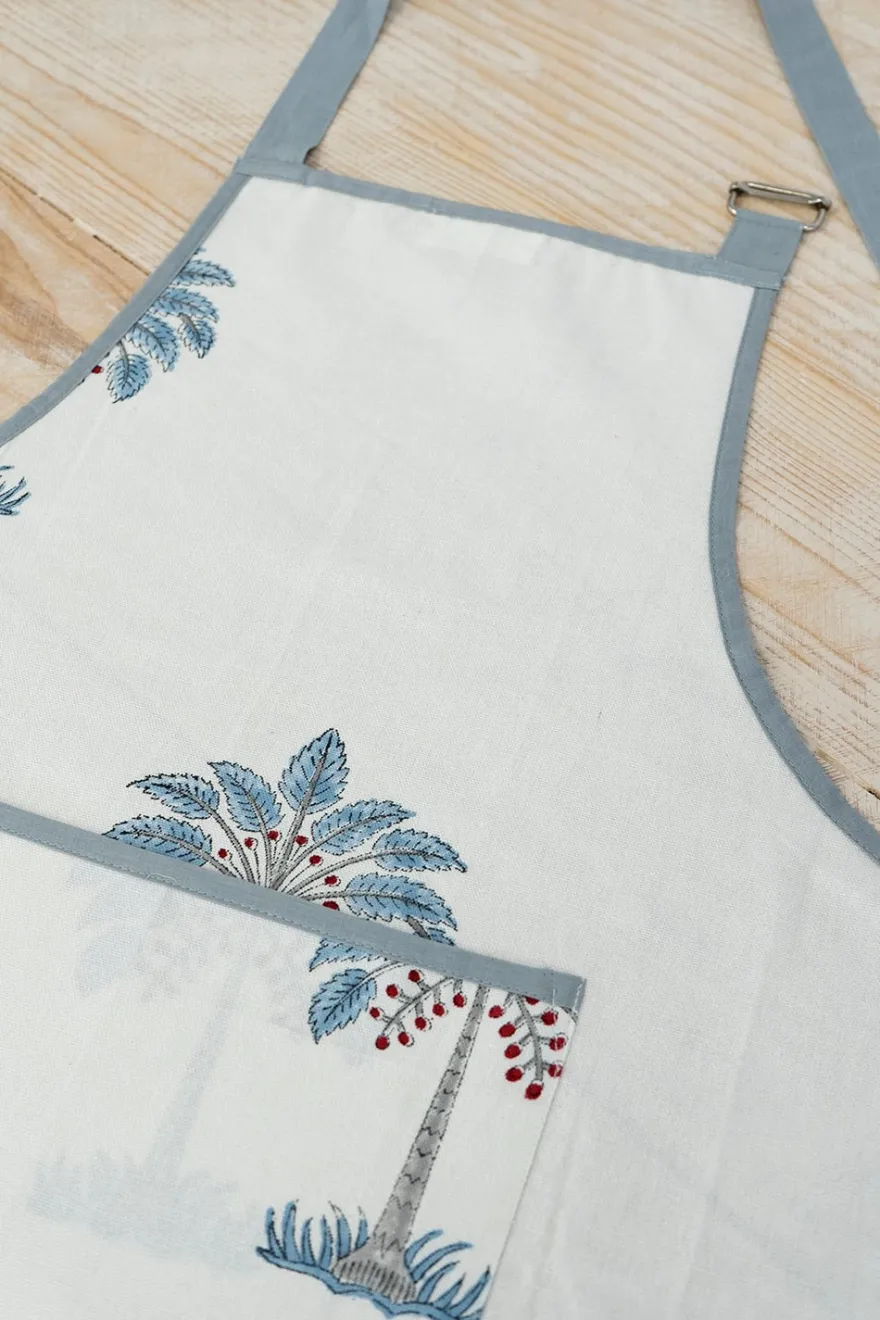 Delantal con bolsillo en la parte frontal, 100% algodón con diseño Indira, cuyo significado es “Belleza”, pintado a mano en la India.
