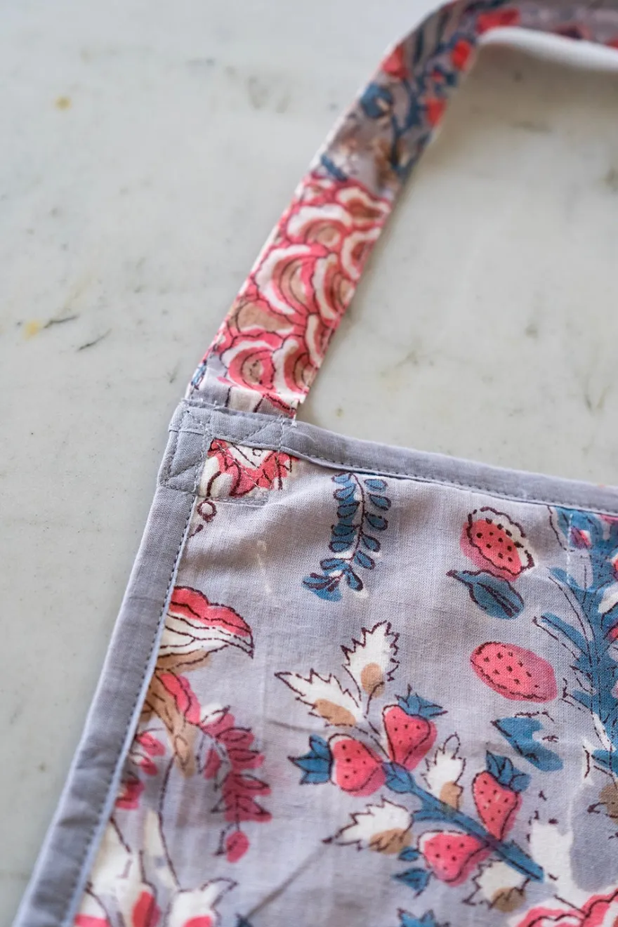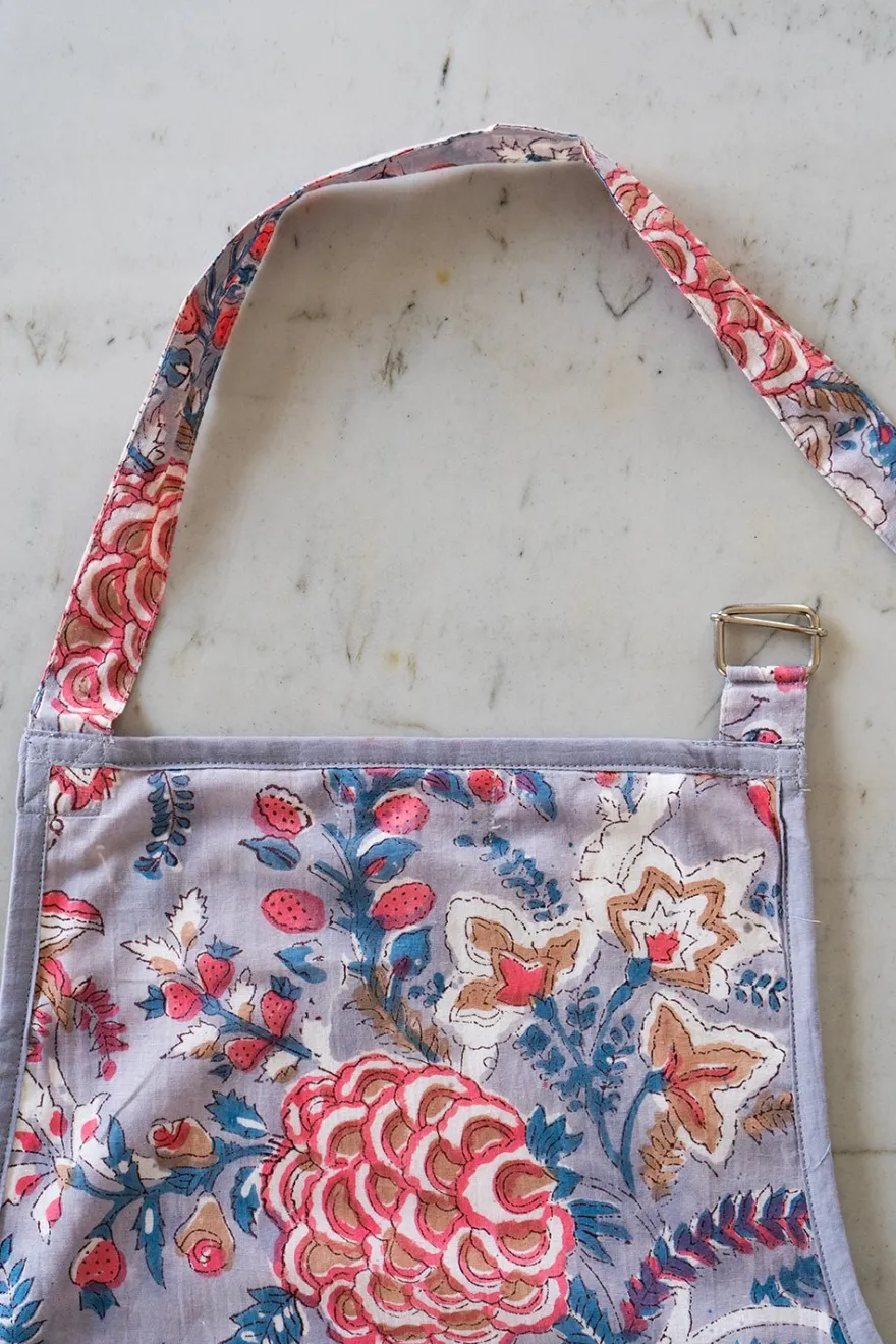 Delantal con bolsillo en la parte frontal, 100% algodón con diseño Indra, cuyo significado es “Lluvia”, pintado a mano en la India.