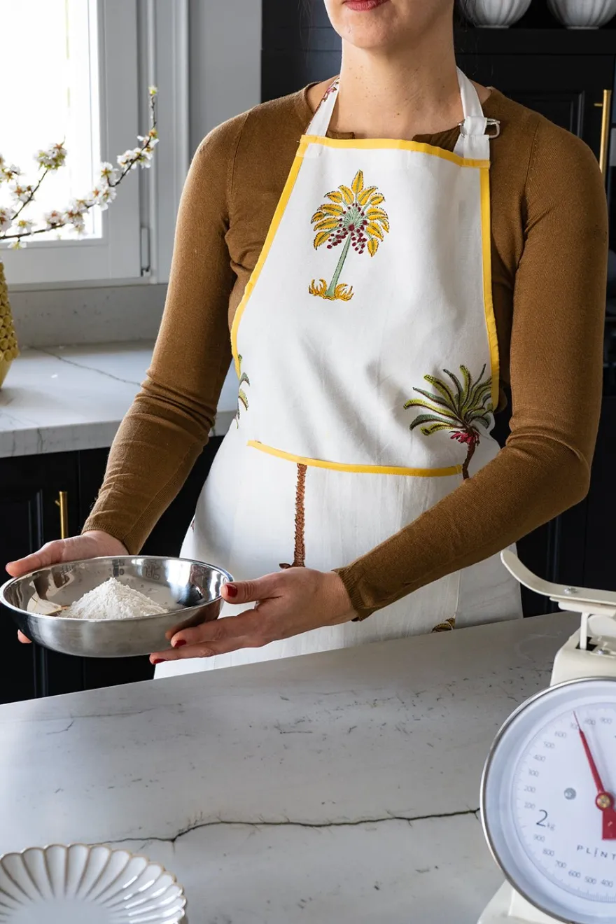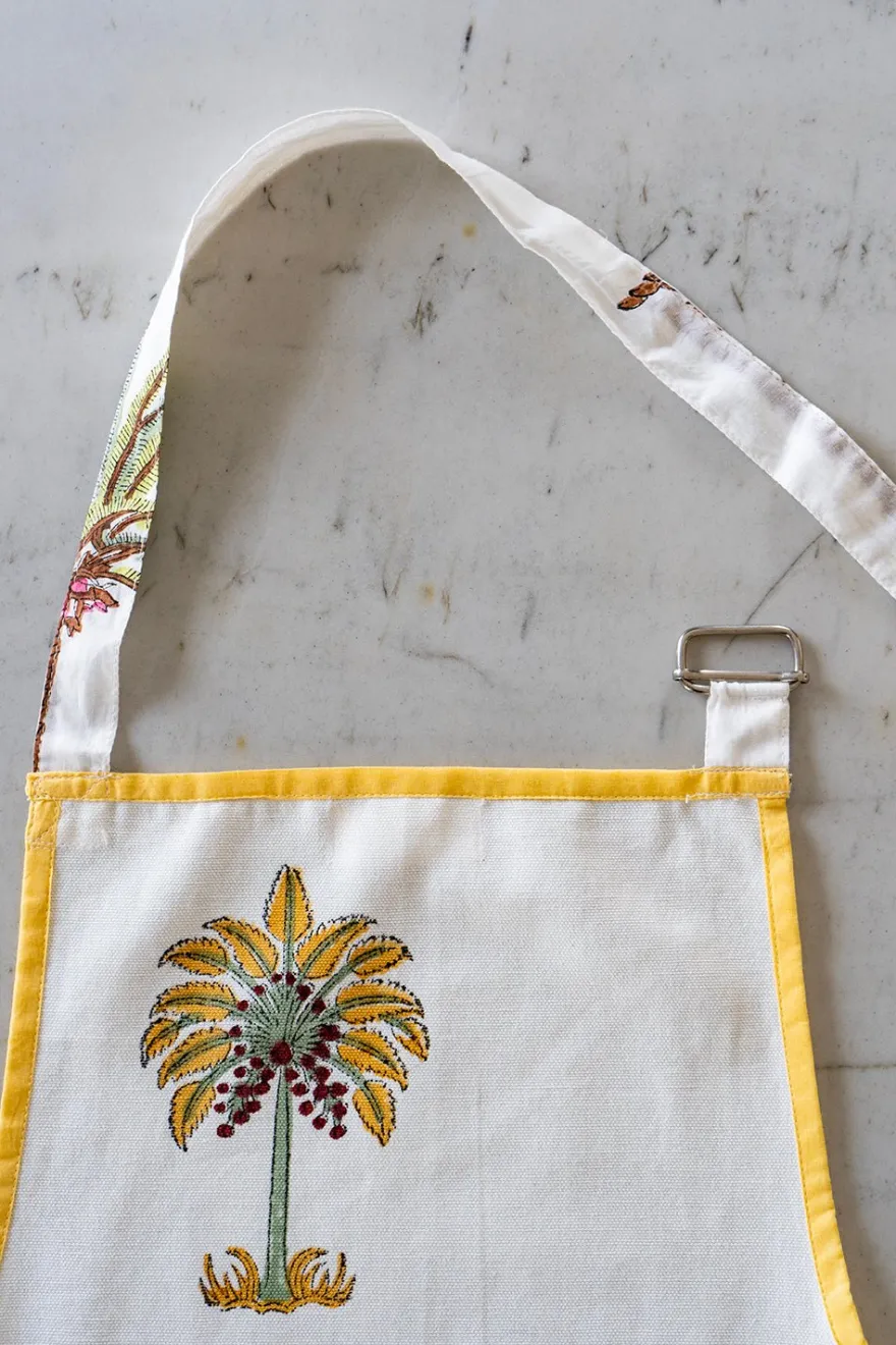 Delantal con bolsillo en la parte frontal, 100% algodón con diseño Kala, cuyo significado es “Arte”, pintado a mano en la India.