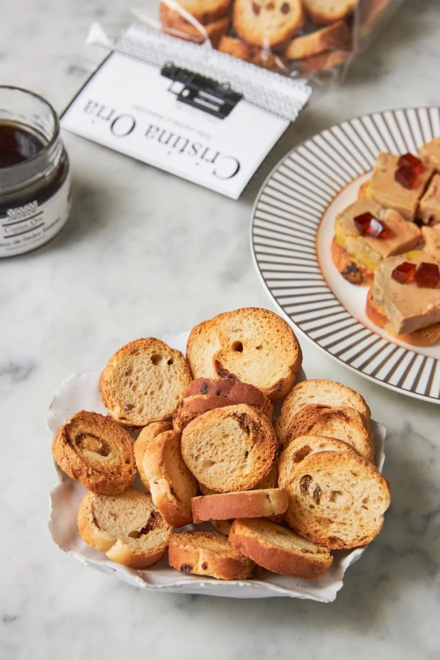 Tostadas con pasas de uva, perfectas para acompañar nuestro foie mi cuit.